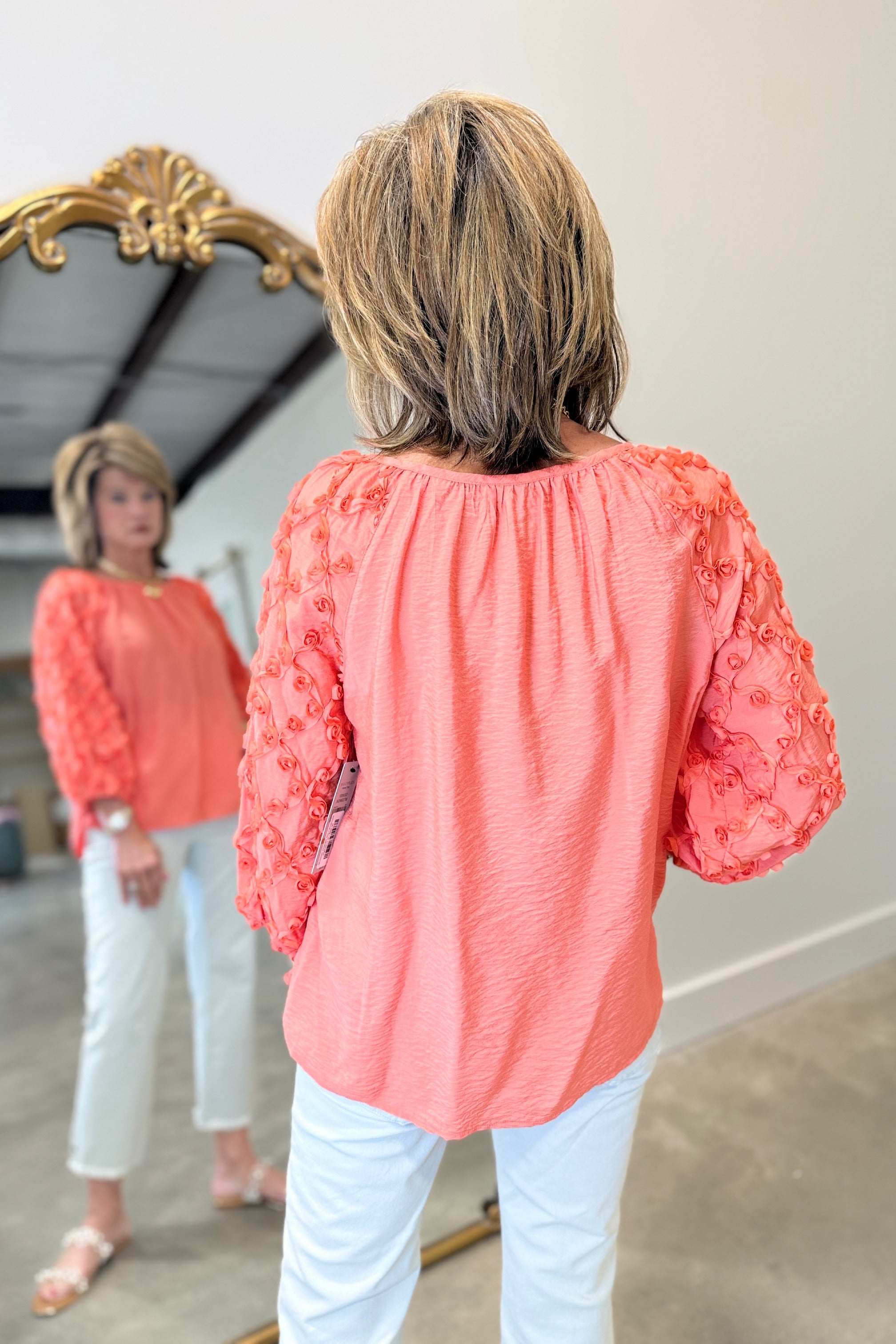 Multiples 3/4 Puff Raglan Sleeve Wide Neck Peasant Top Cantaloupe