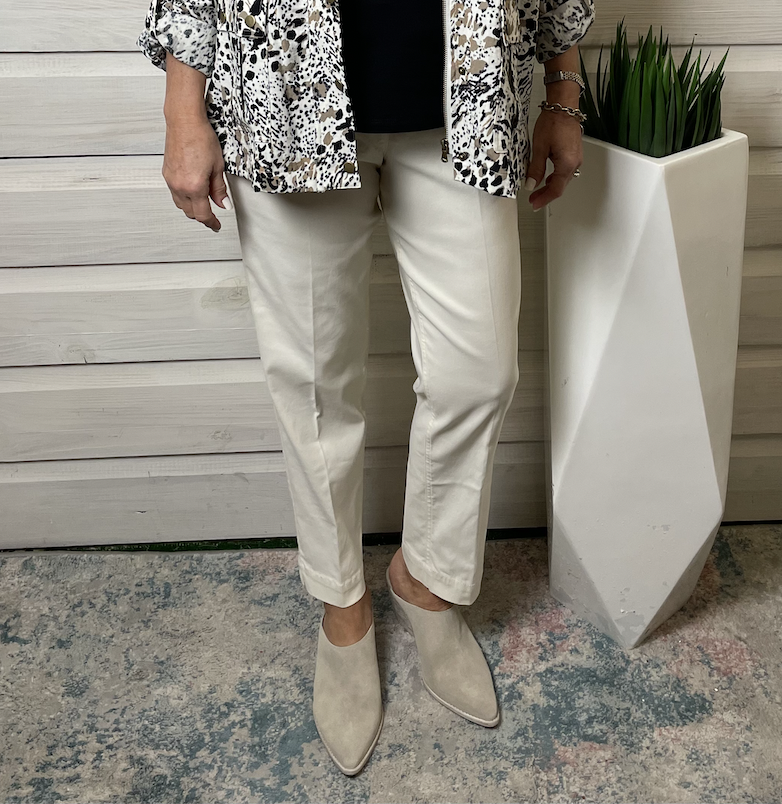 Multiples Slim Sation Pull On Ankle Pant Real Front & Back Pockets Ecru