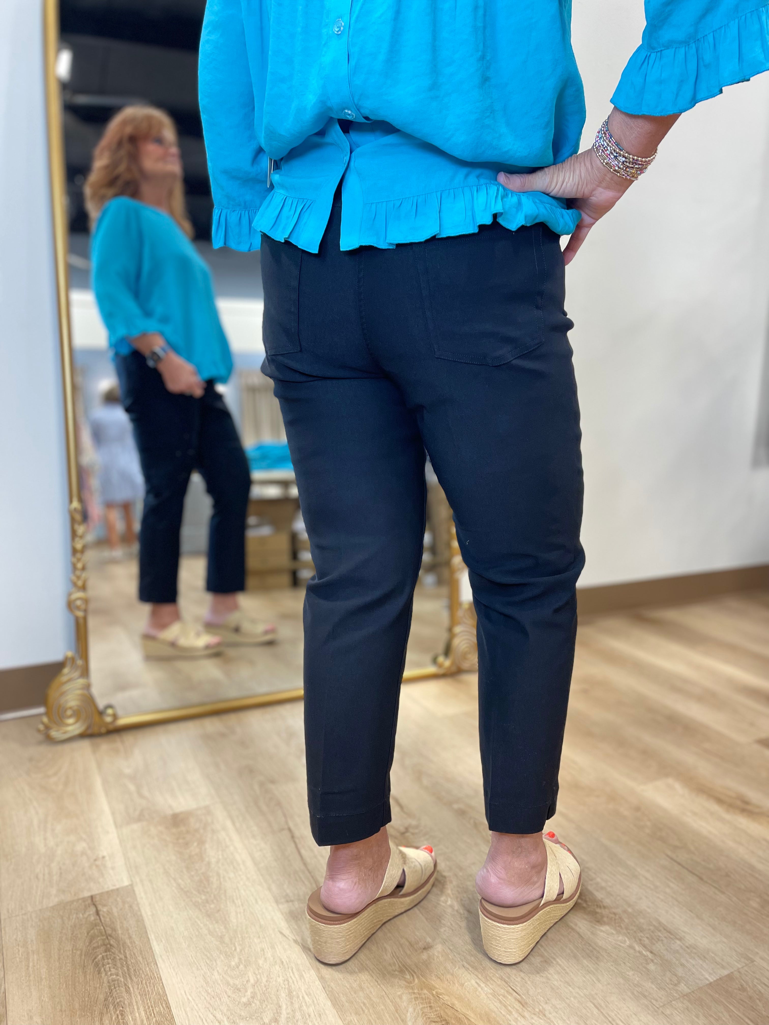 Multiples Pull On Crop Pant w Real Front & Back Pockets Black.