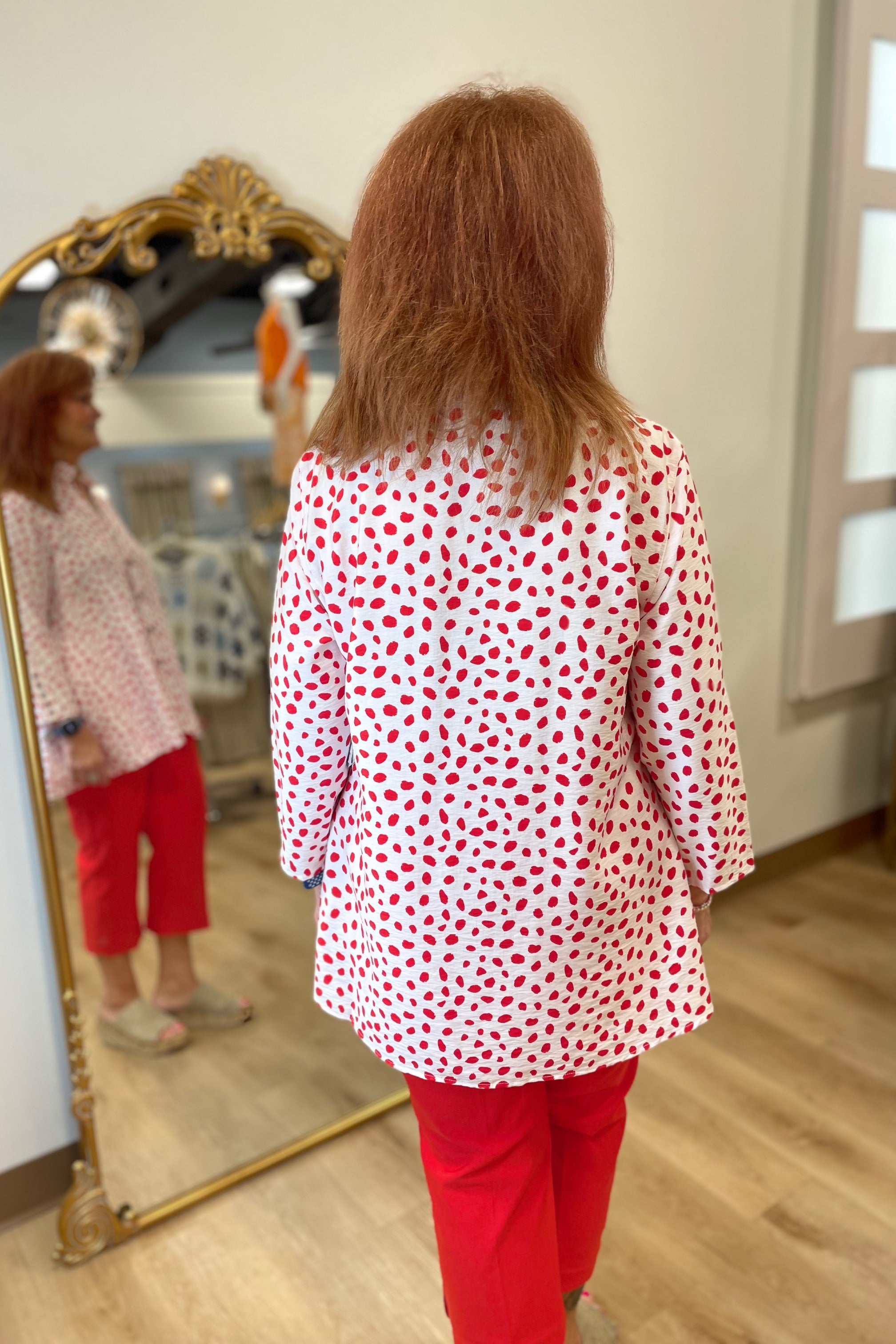 The perfect mix of bold and trendy, the 5-Button 3/4 Sleeve Wire Collar Y Neck Shirt by Multiples. Rock the fiery red color while staying cool in the 3/4 sleeves and stylish in the wire collar. A must-have for any fashion-forward individual. (Plus, those 5 buttons add a touch of flair!)