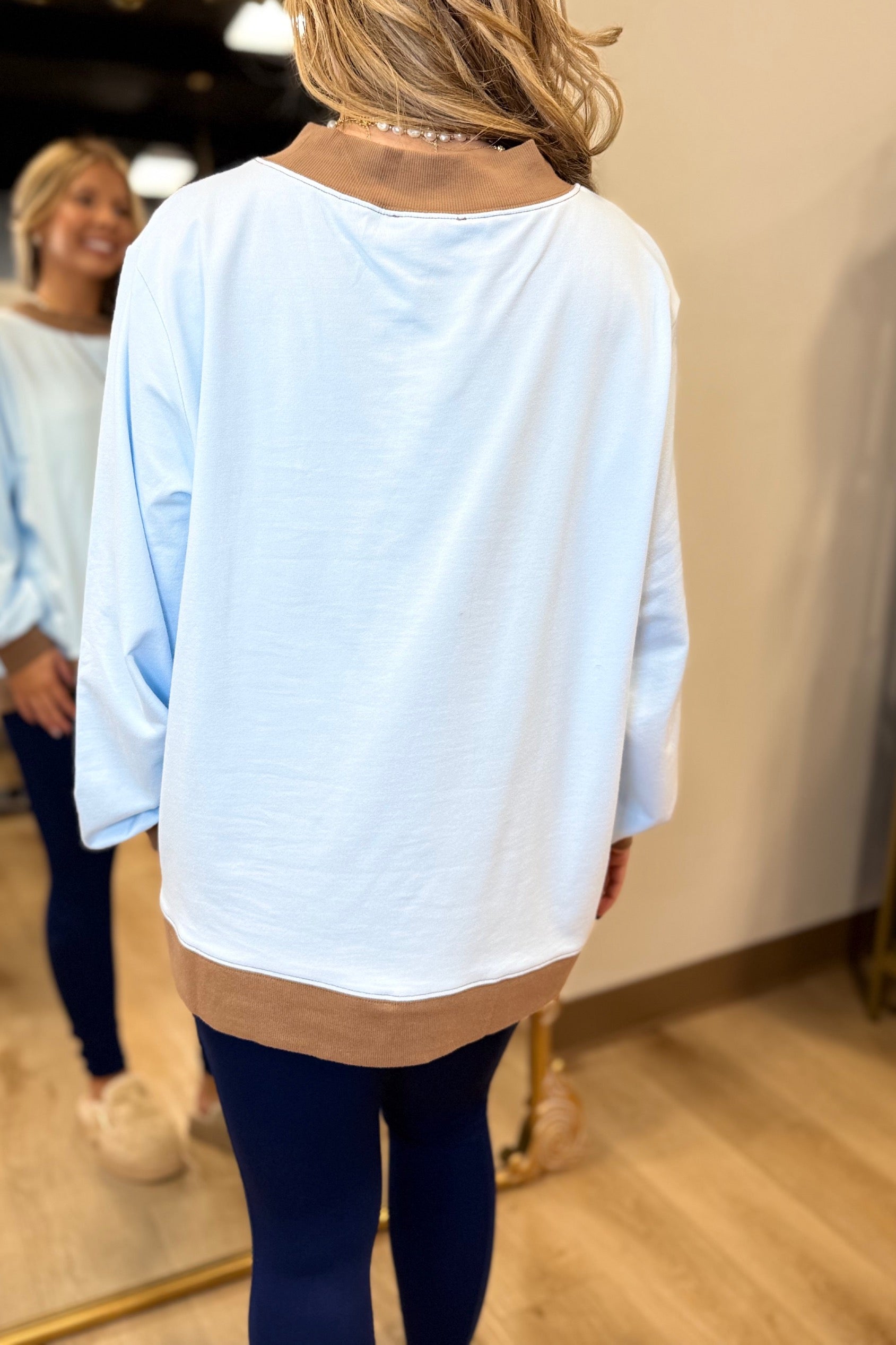 My Kind of Mock Neck French Terry Sweatshirt Blue/Brown