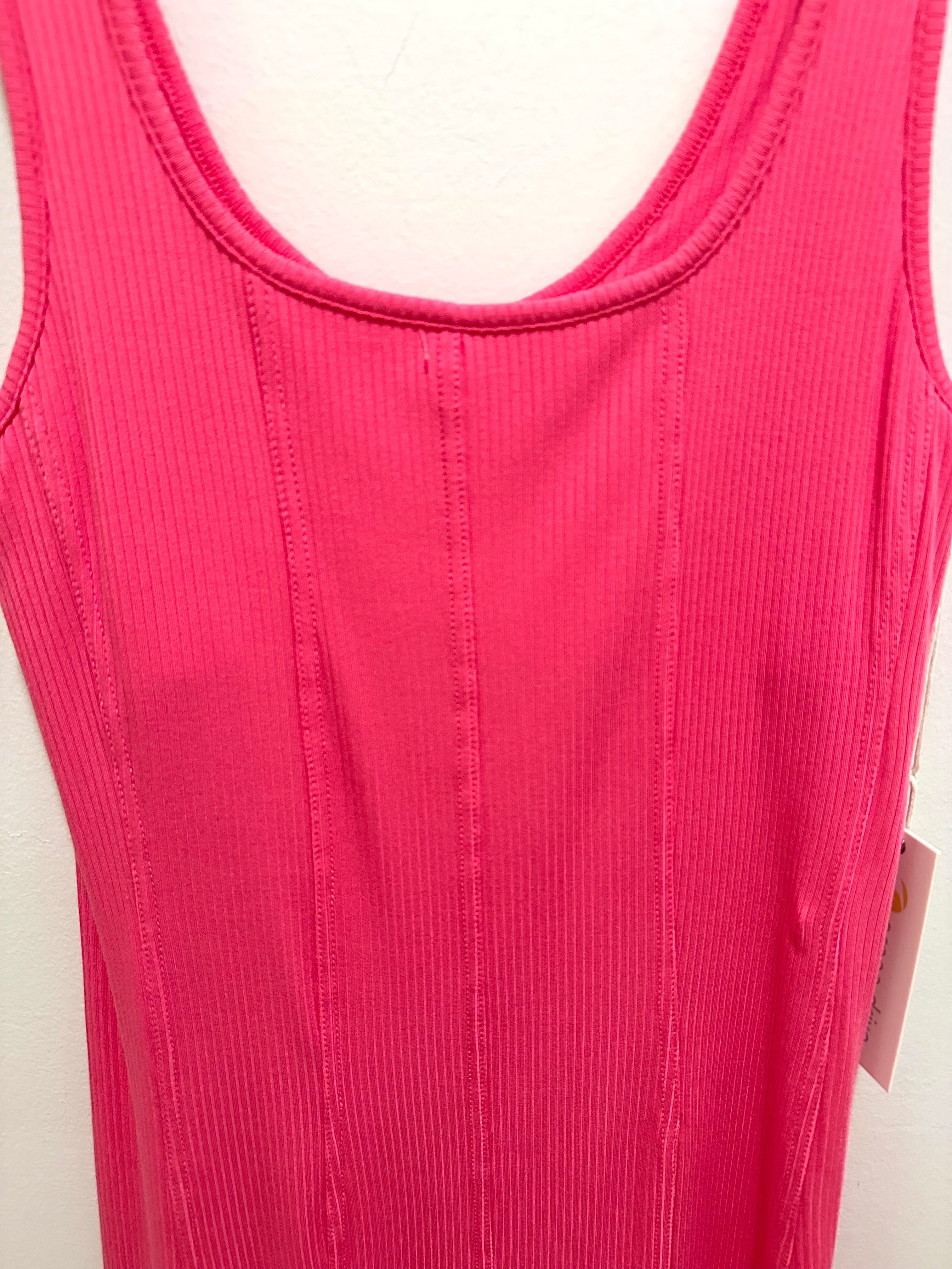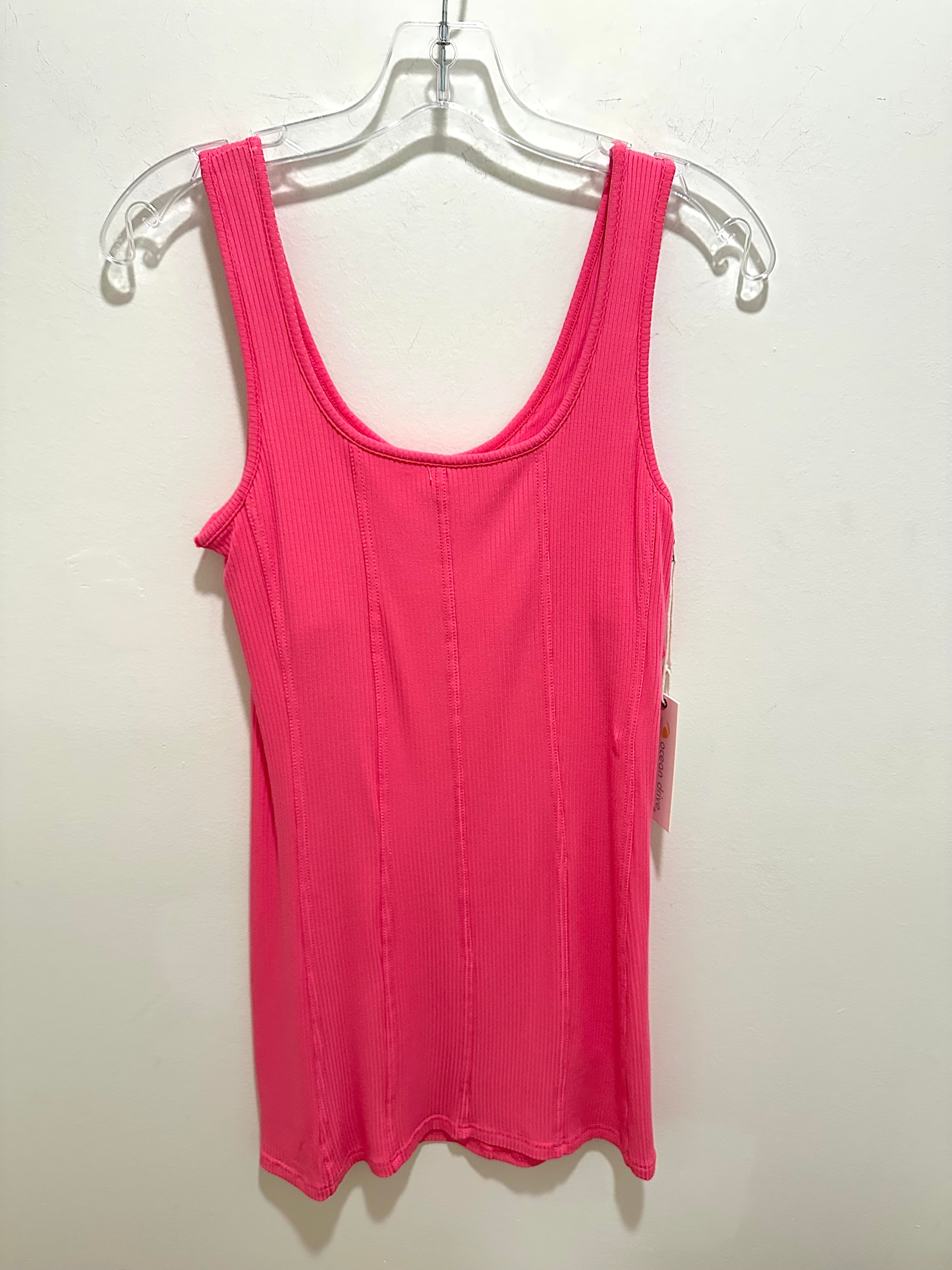 Ocean Drive Seamed Rib Knit Mini Dress Bright Pink.
