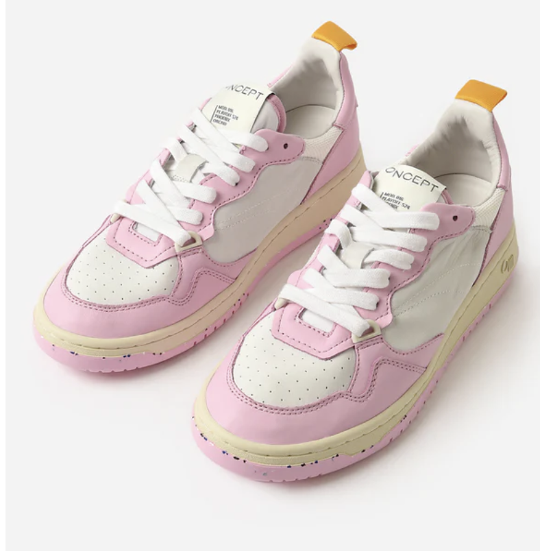 A 90s-inspired retro sneaker made from soft leather in the perfect pink color with a unique speckled sole.