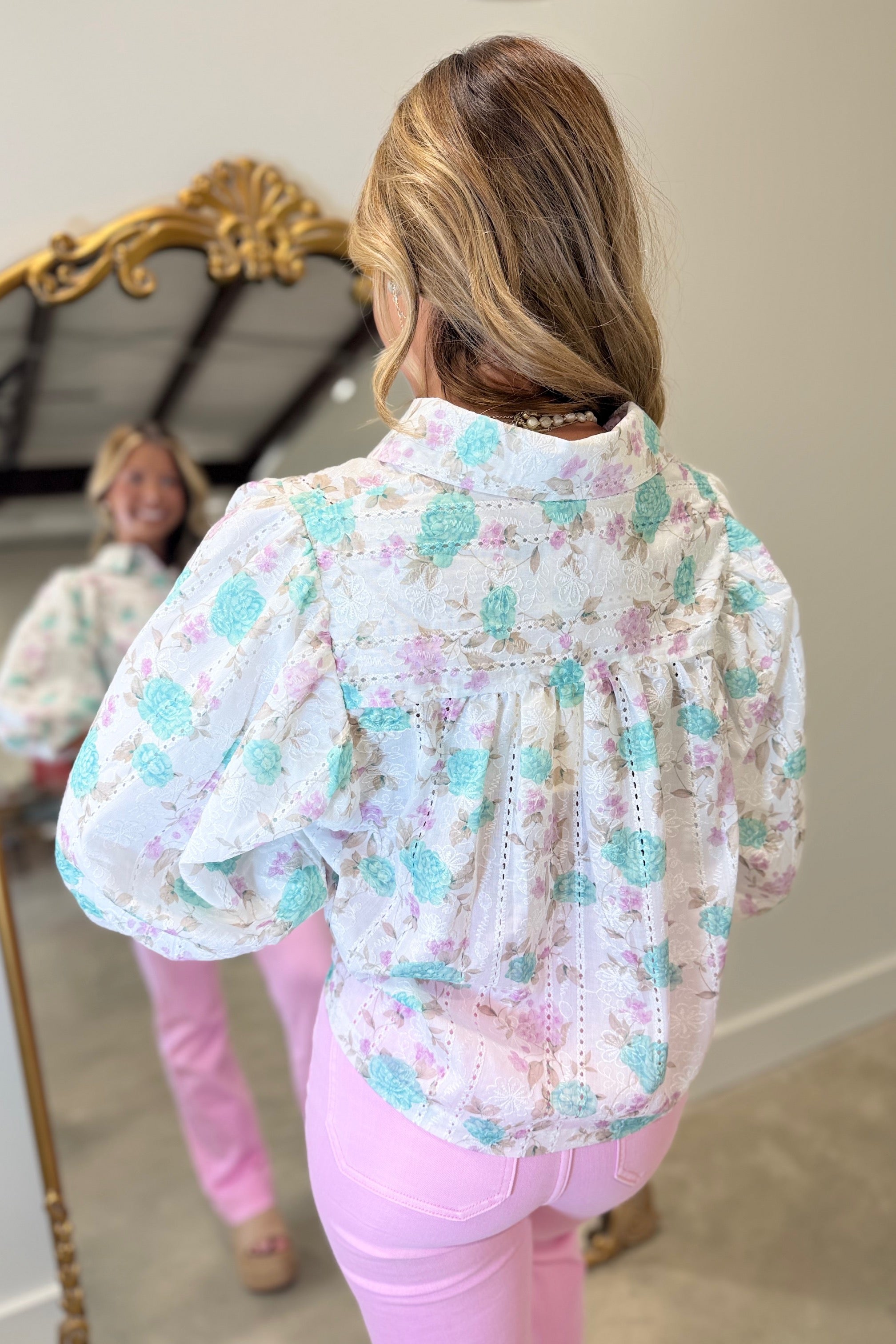 Pastel Puffer Button Front Blouse Mint