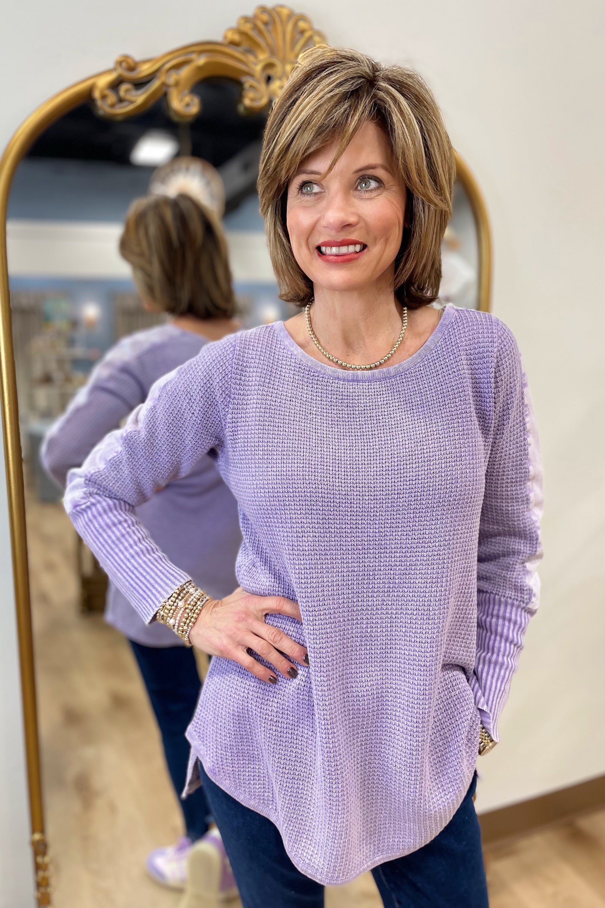 Peanut Butter & Jelly Seed Stitch Hi Low Pullover Lavender