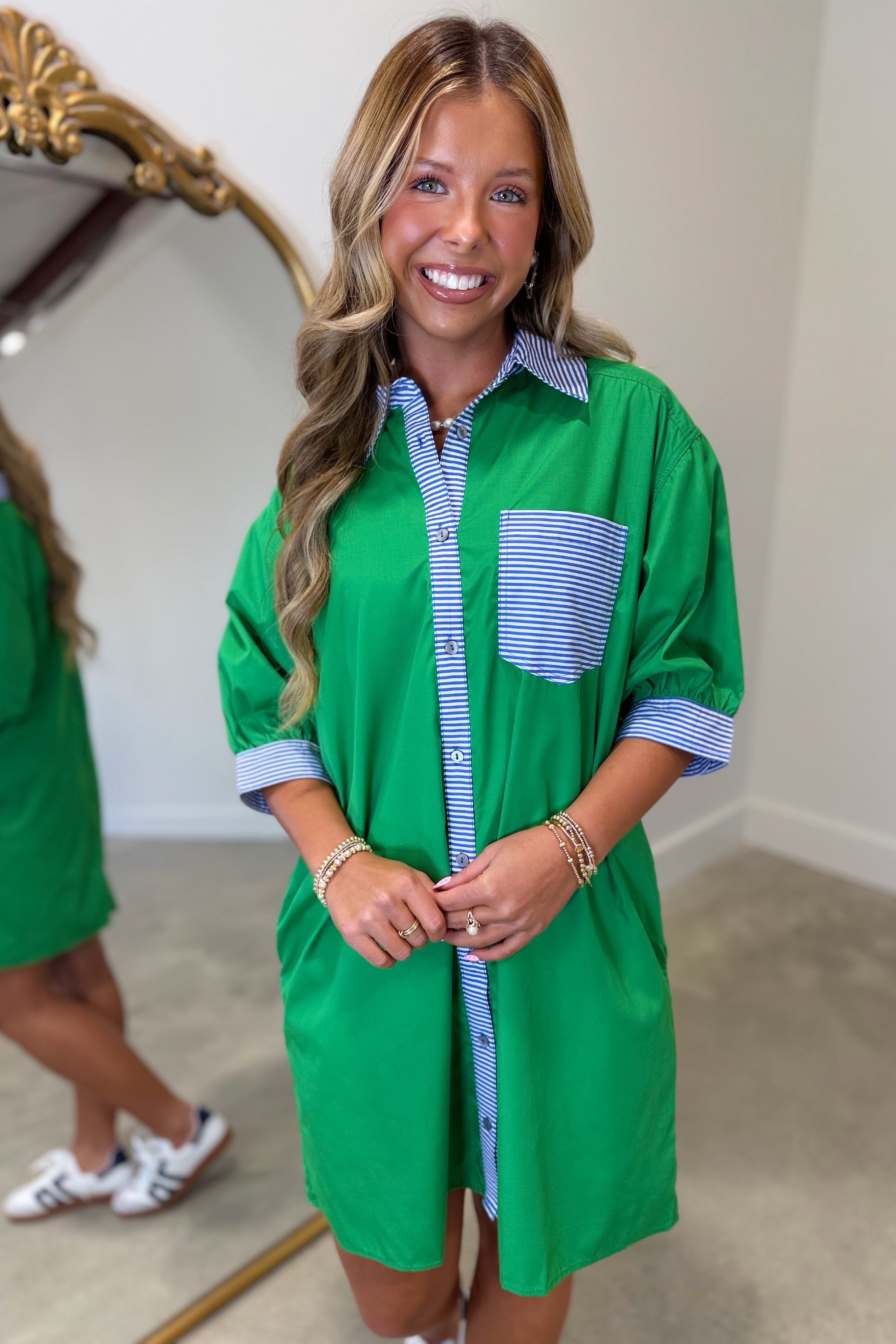 Pops of Stripes Sneaker Dress Green