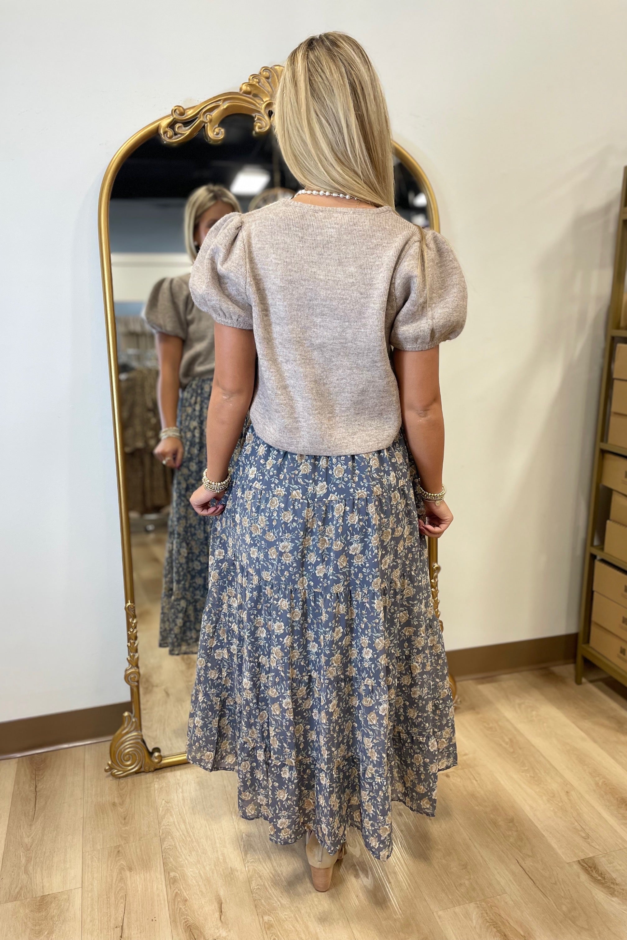 Fields of Floral Tiered Maxi Skirt Slate Blue