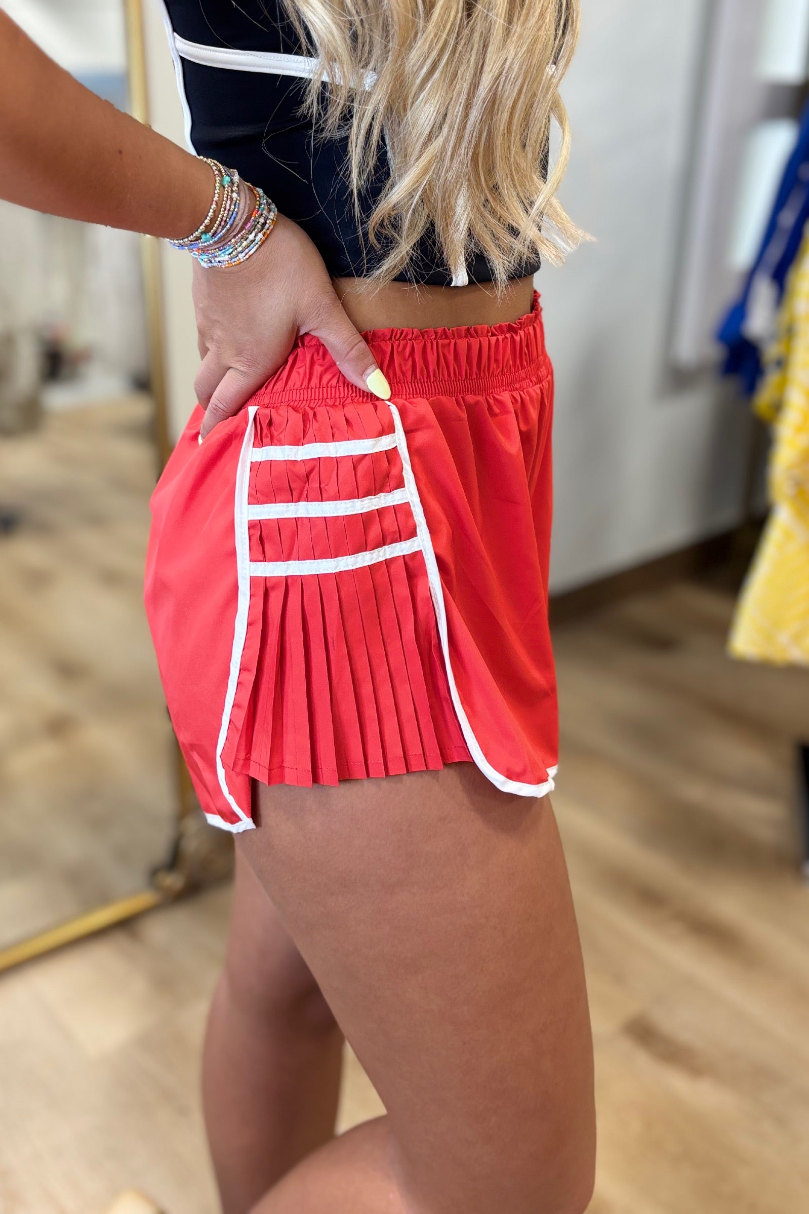 Prissy Pleated Side Short Red