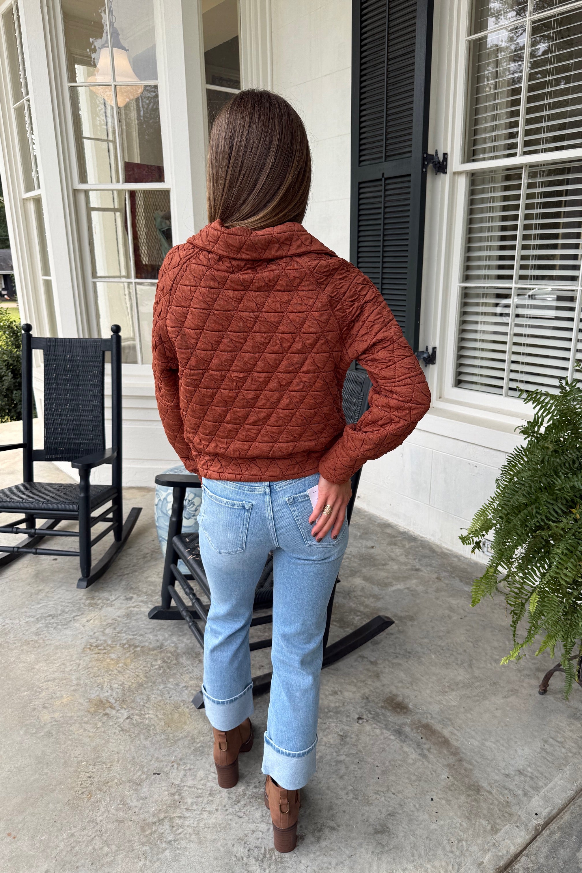 Pumpkin Patrol Quilted Pullover Brick