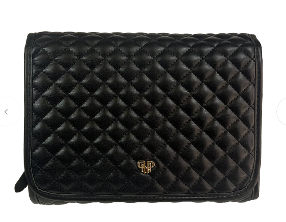 Our best selling Timeless Quilted Getaway Toiletry Case is inspired by classic 'Chanel.' Perfect for travel, this chic accessory keeps your toiletries secure and beautifully organized. With the top folding hanger, your items are easily visible and accessible, no matter where your travels take you. All pockets have a clear view design, allowing you to effortlessly admire your essentials without the need to unzip. Additionally, the bottom pocket includes a removable zipper pouch for added storage capacity.