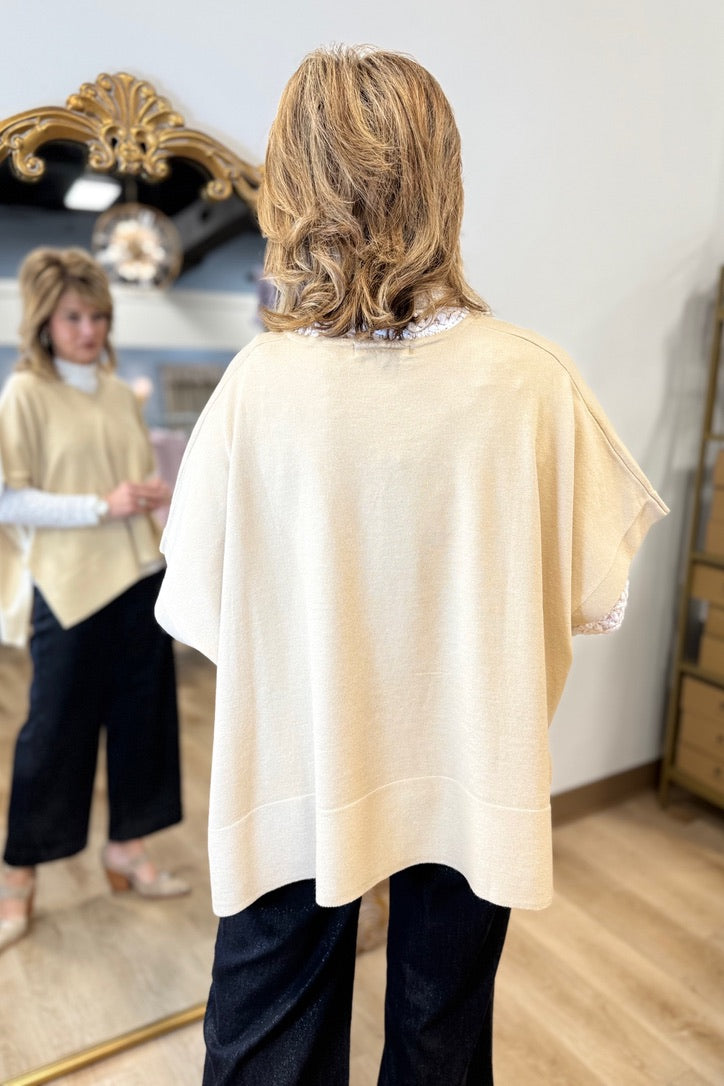 Embrace cozy charm with the Soft Touch Poncho Style Sweater. Featuring a playful drop shoulder, flirty cap sleeves, and a flattering v-neck, this generous-fit layering piece is as comfy as it is stylish. The straight hem with side vents adds a breezy touch, perfect for mixing and matching. Crafted from a soft blend of acrylic, polyester, and nylon, it’s easy to care for with a gentle cold wash. Wrap yourself in warmth and effortless cool every time you wear it!