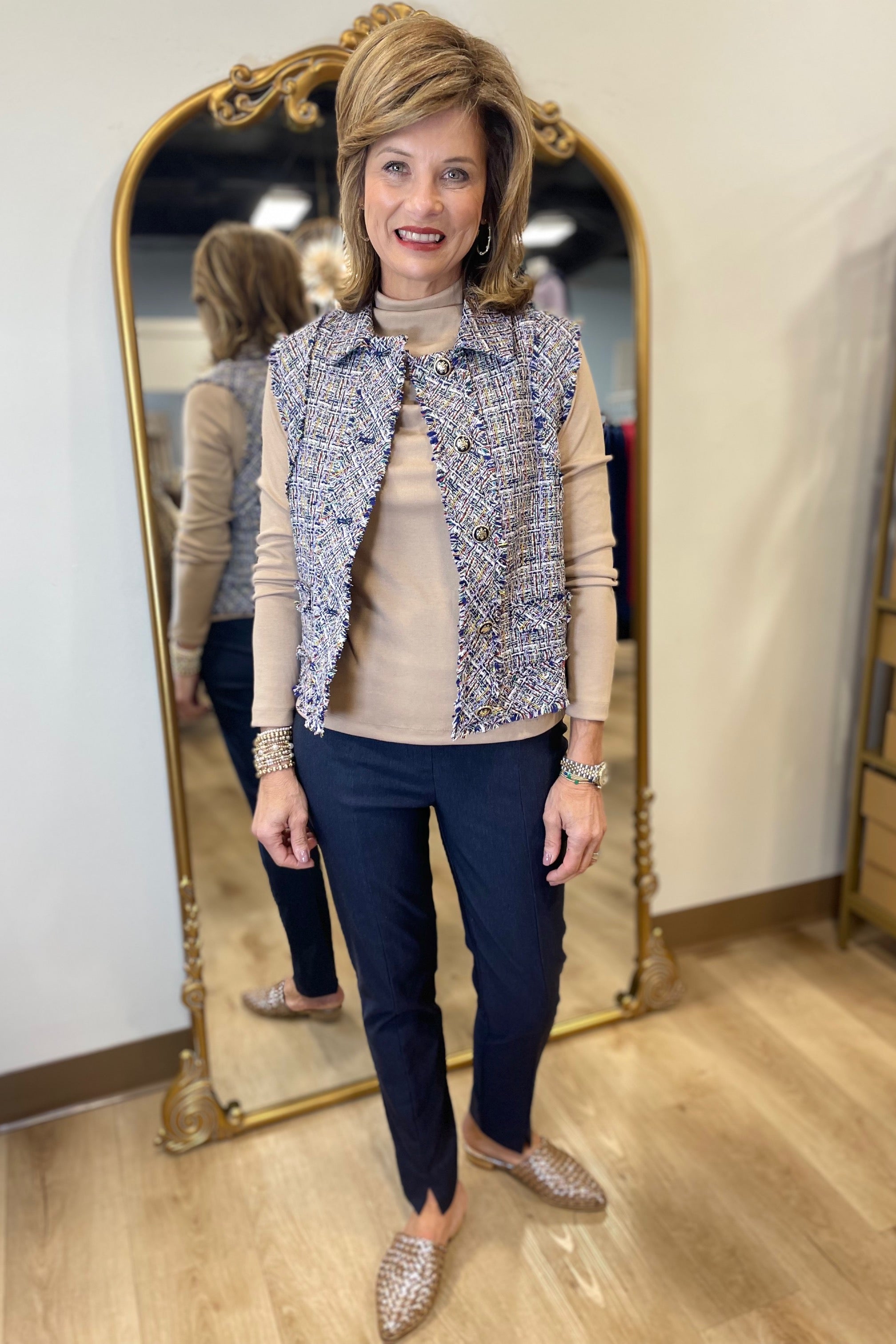 Renuar pants have it all: comfort, durability, and style. The pull on slim ankle pant with front slit is perfect for a bold, confident workplace look or for wearing casually around town. Faux front and back pockets add elements of interest while keeping your silhouette as smooth as possible. The wide waistband provides a sleek fit.