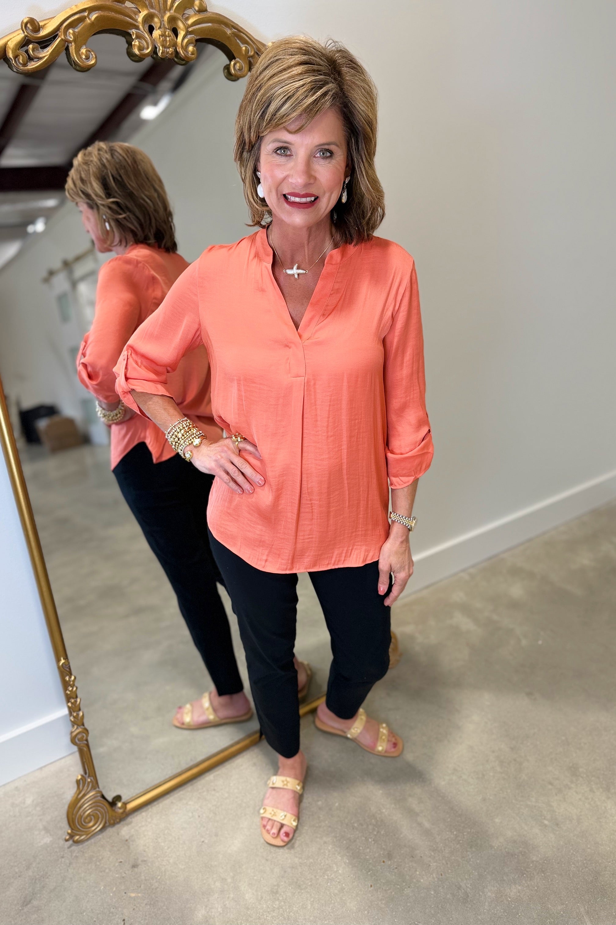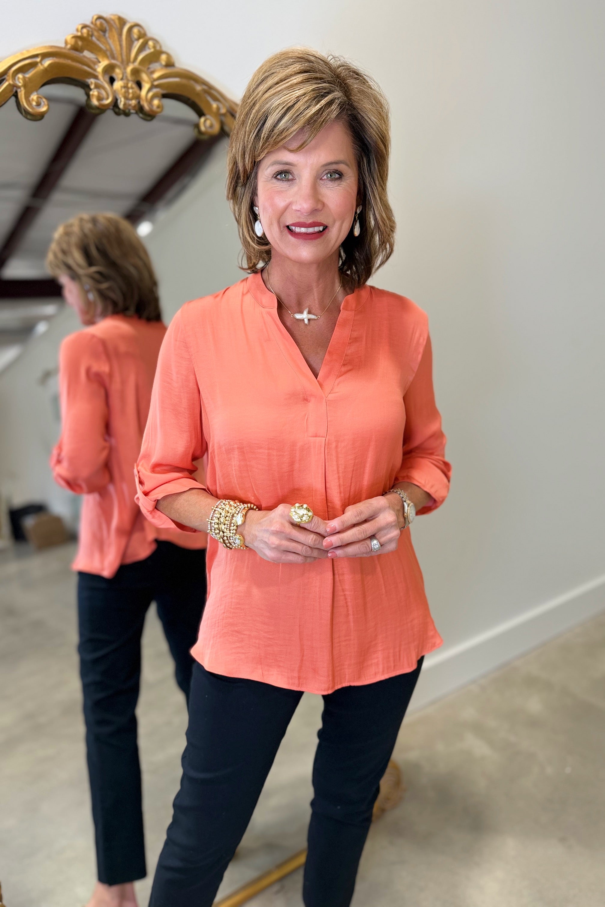Renuar Roll Tab Sleeve Blouse Sorbet