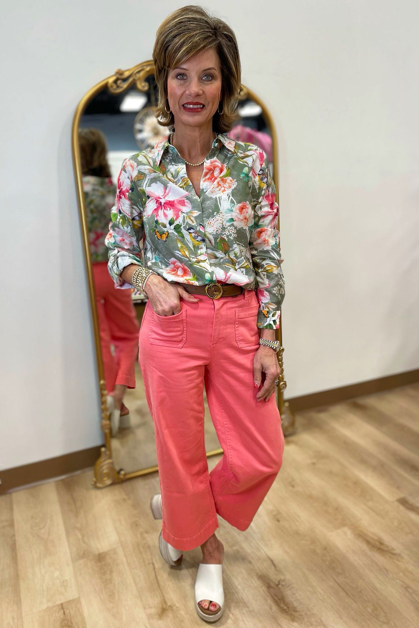 52% Cotton 41% Tencel 5% Polyester 2% Spandex.