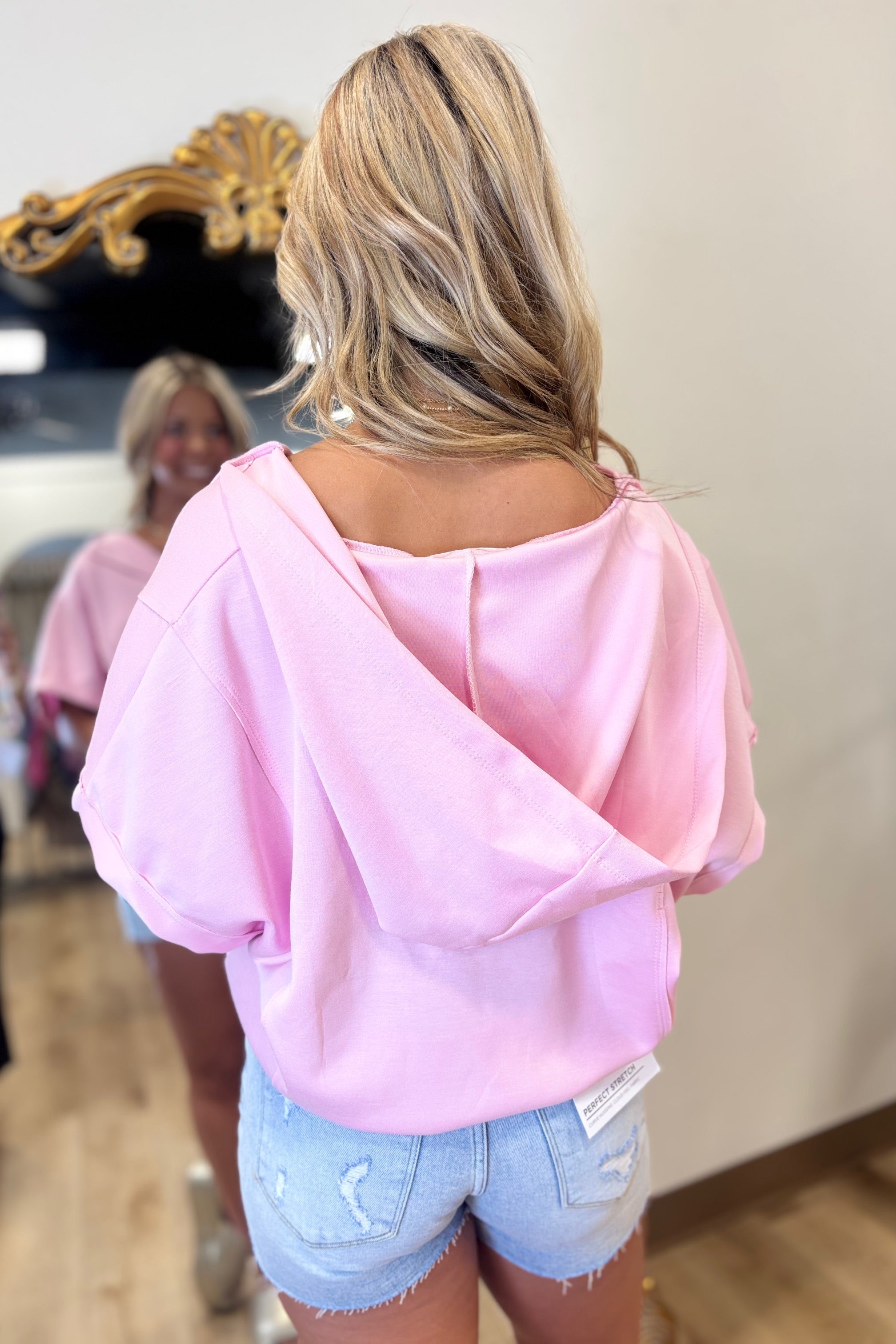 Scuba Front Kangaroo Pocket Hoodie Top Pink