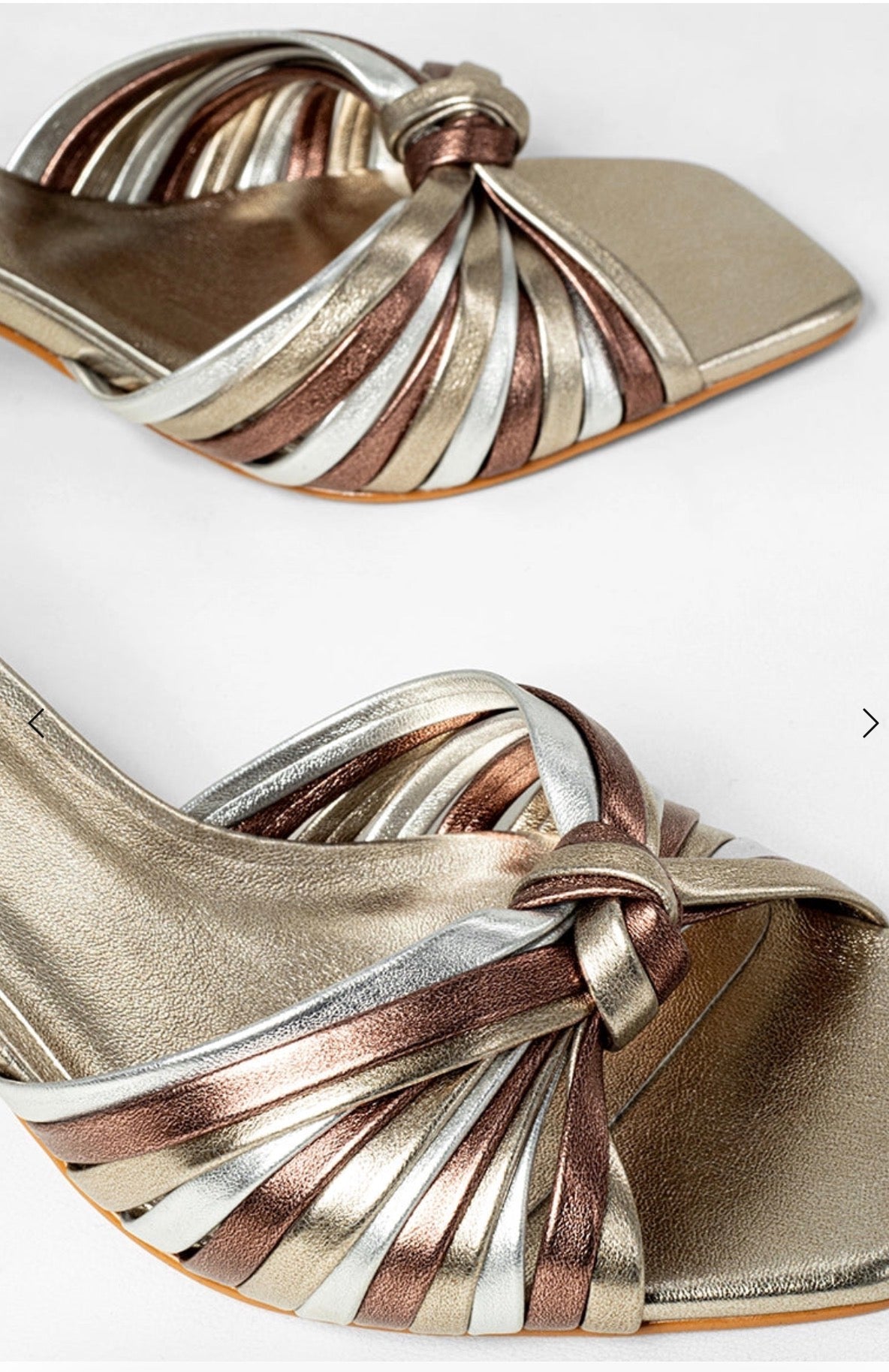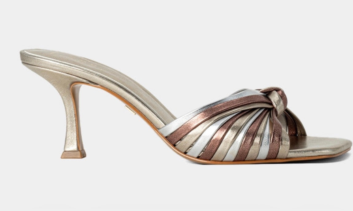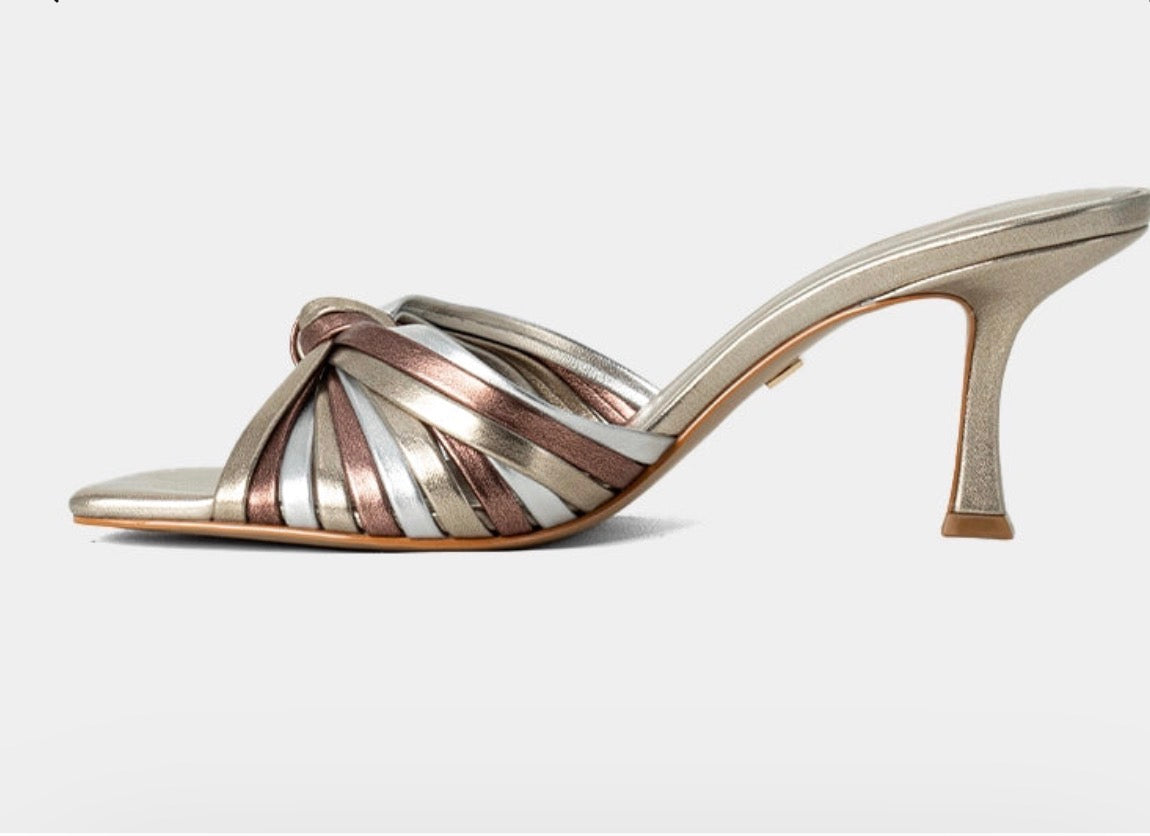 Meet your new party favorite. Georgina Metallics is a glamorous nod to retro elegance with a knotted upper in shimmering gold, bronze, and rose metallic tones. This slip-on heel is designed to elevate your night-out looks while keeping things effortlessly chic. Perfect with flowy dresses or tailored sets, it’s the ultimate “dancing until dawn” heel. Shine bright with every step.