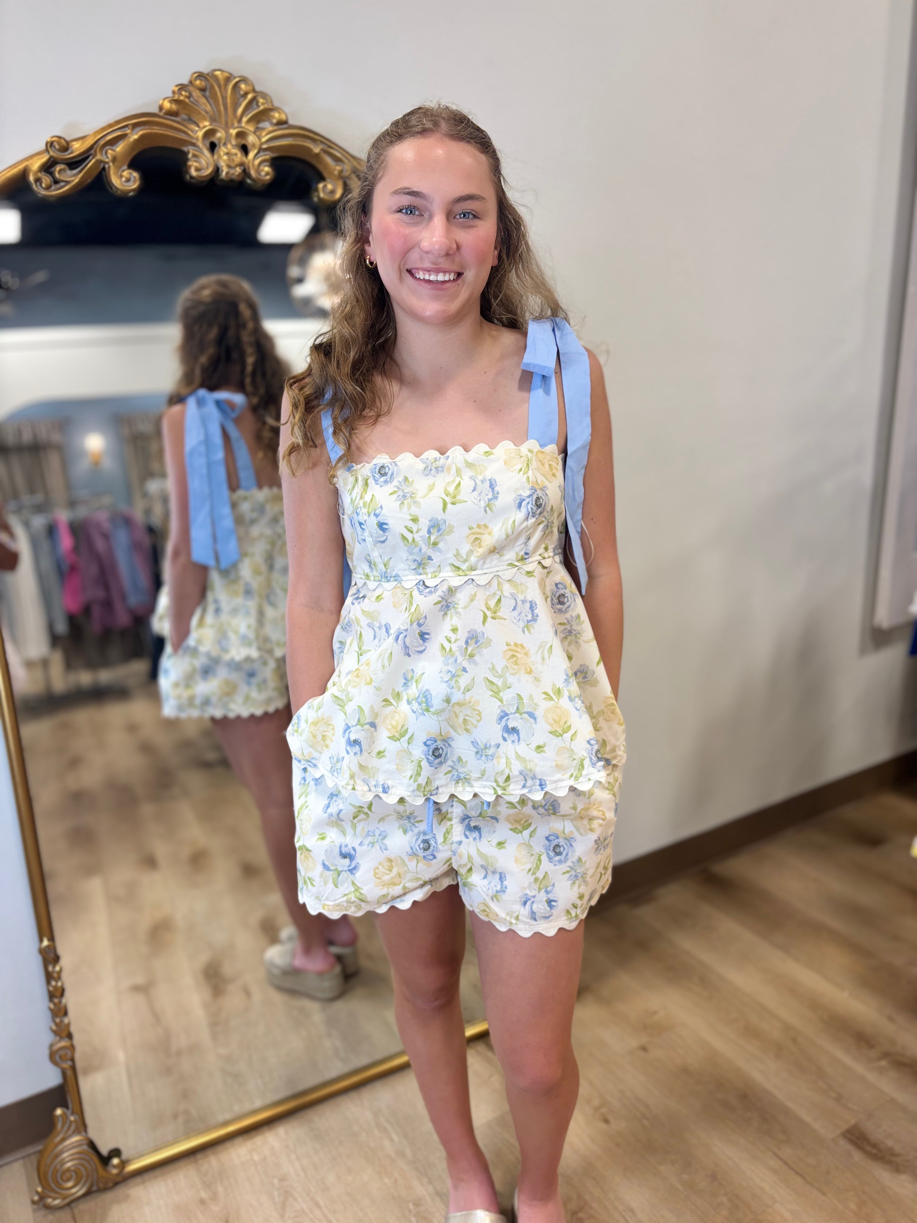 Simple Floral Set Cream Blue