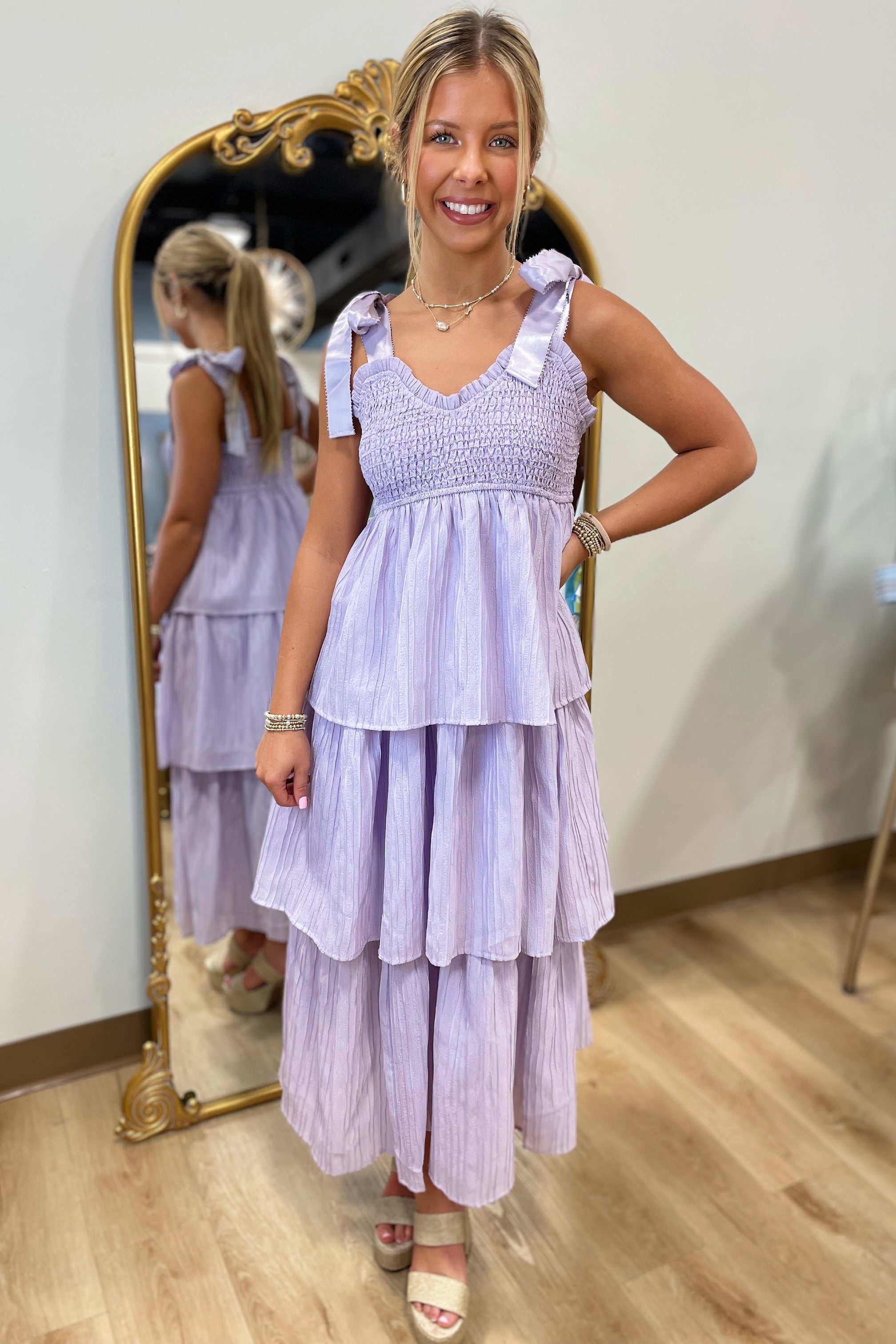 Soft Elegance Shoulder Tie Tiered Dress Lilac