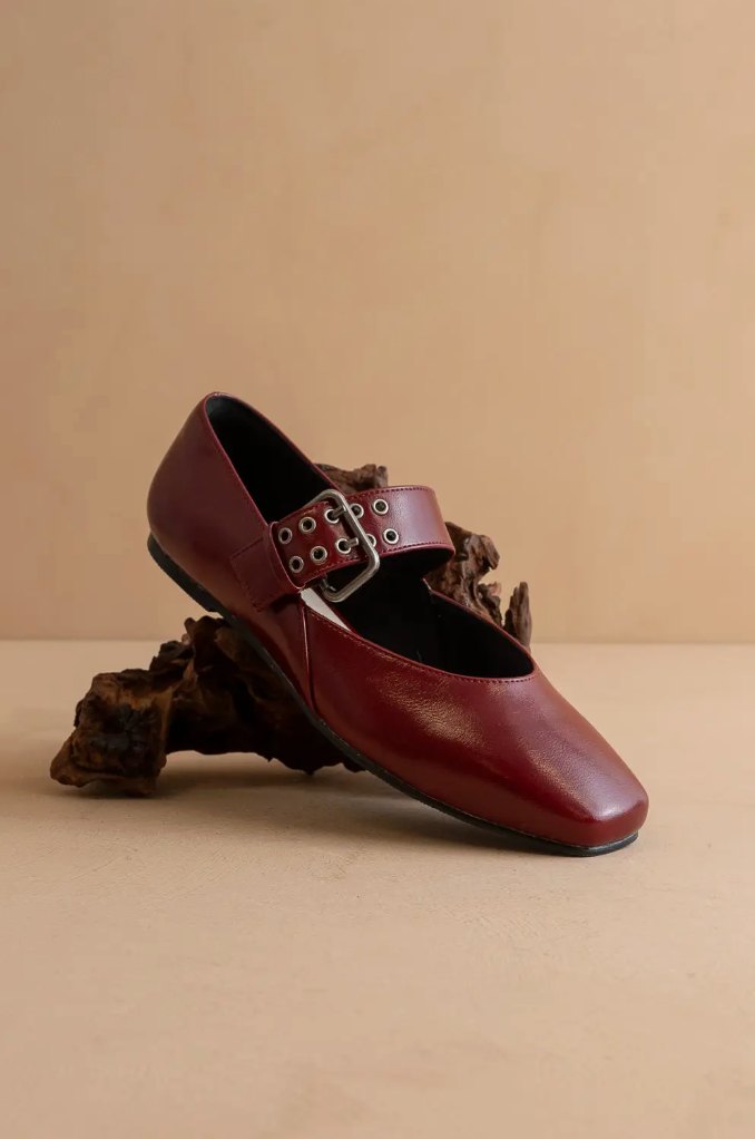 The SOHO BALLET FLAT takes the balletcore trend to new heights with its chic, on-trend design. Crafted from atelier-selected vegan leather and designed exclusively in California, this flat features a studded buckle strap that adds a touch of edgy sophistication. With its DreamCloud Cushion insole for unparalleled comfort and a durable rubber sole, it's the perfect fusion of style and practicality for fall and winter 2025. Materials: * Upper Material: Vegan leather upper * Insole Material: DreamCloud Cushion * Sole or Heel Material: Rubber sole Details: * Brand: Oasis Society * Shaft Height: 2.25" * Heel Height: 0.25" * Types of Closures: Slip On