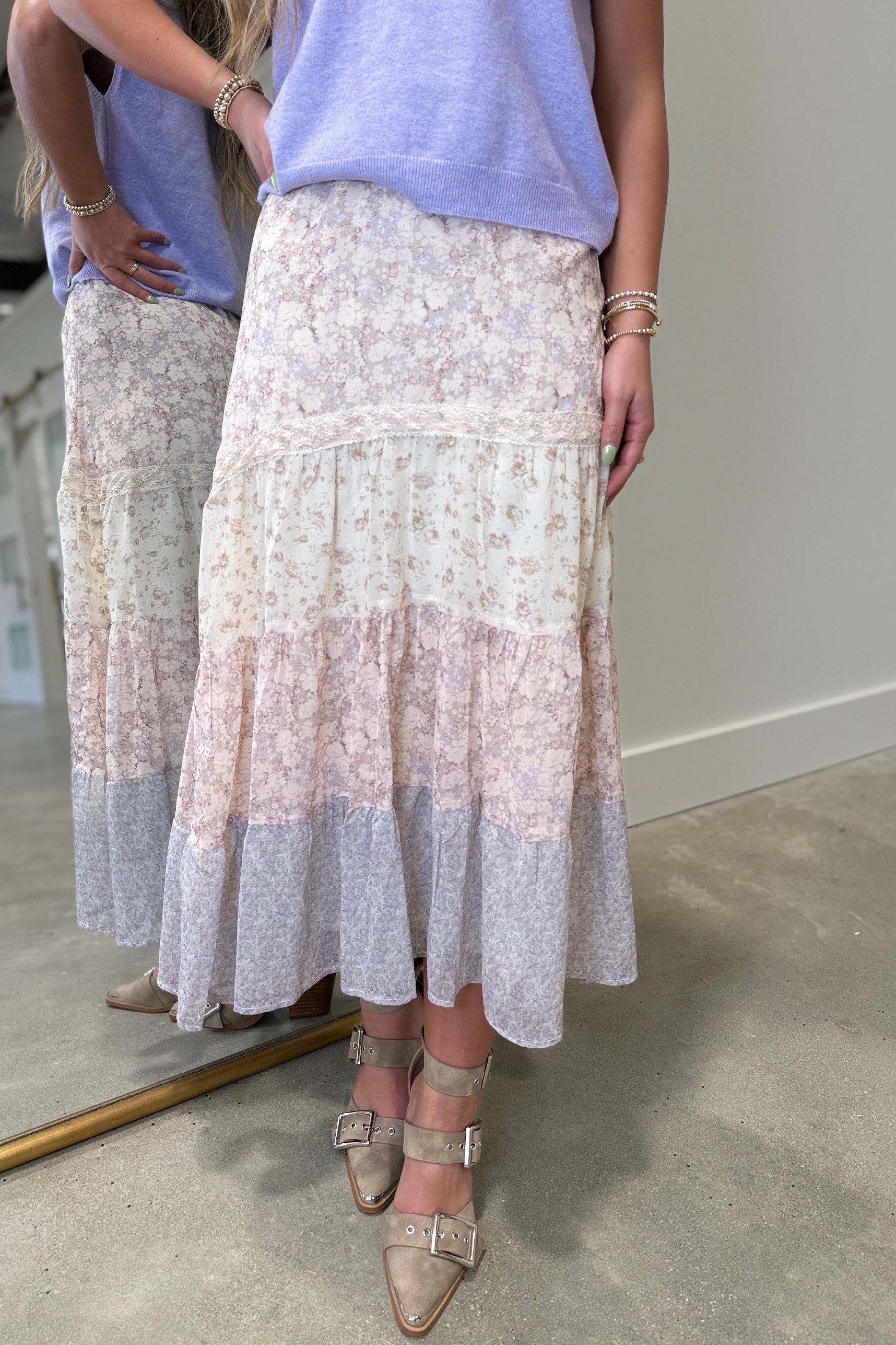 Spring Lace Maxi Skirt Mixed Print.