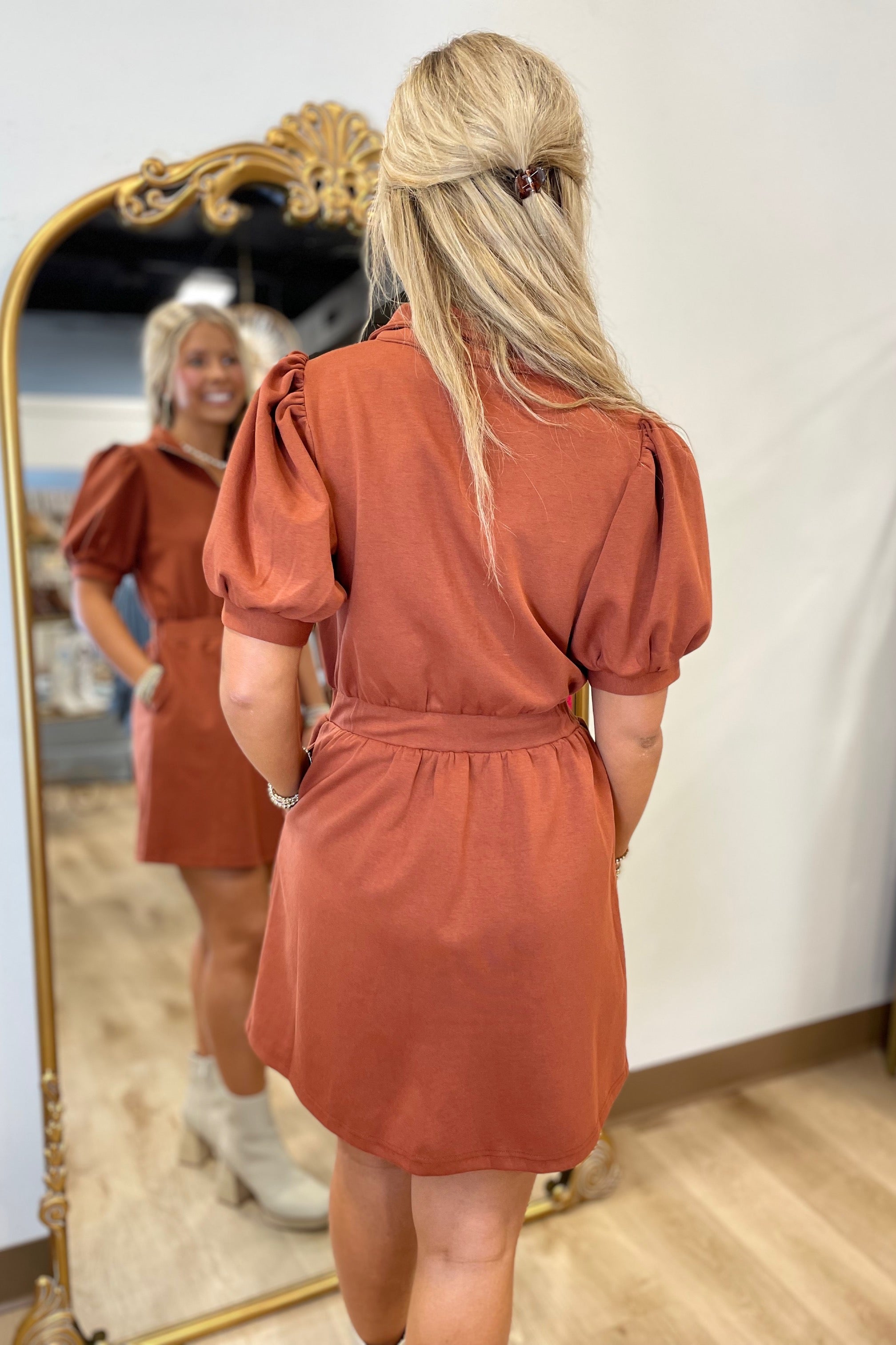 Stella Front Zip Dress Rust