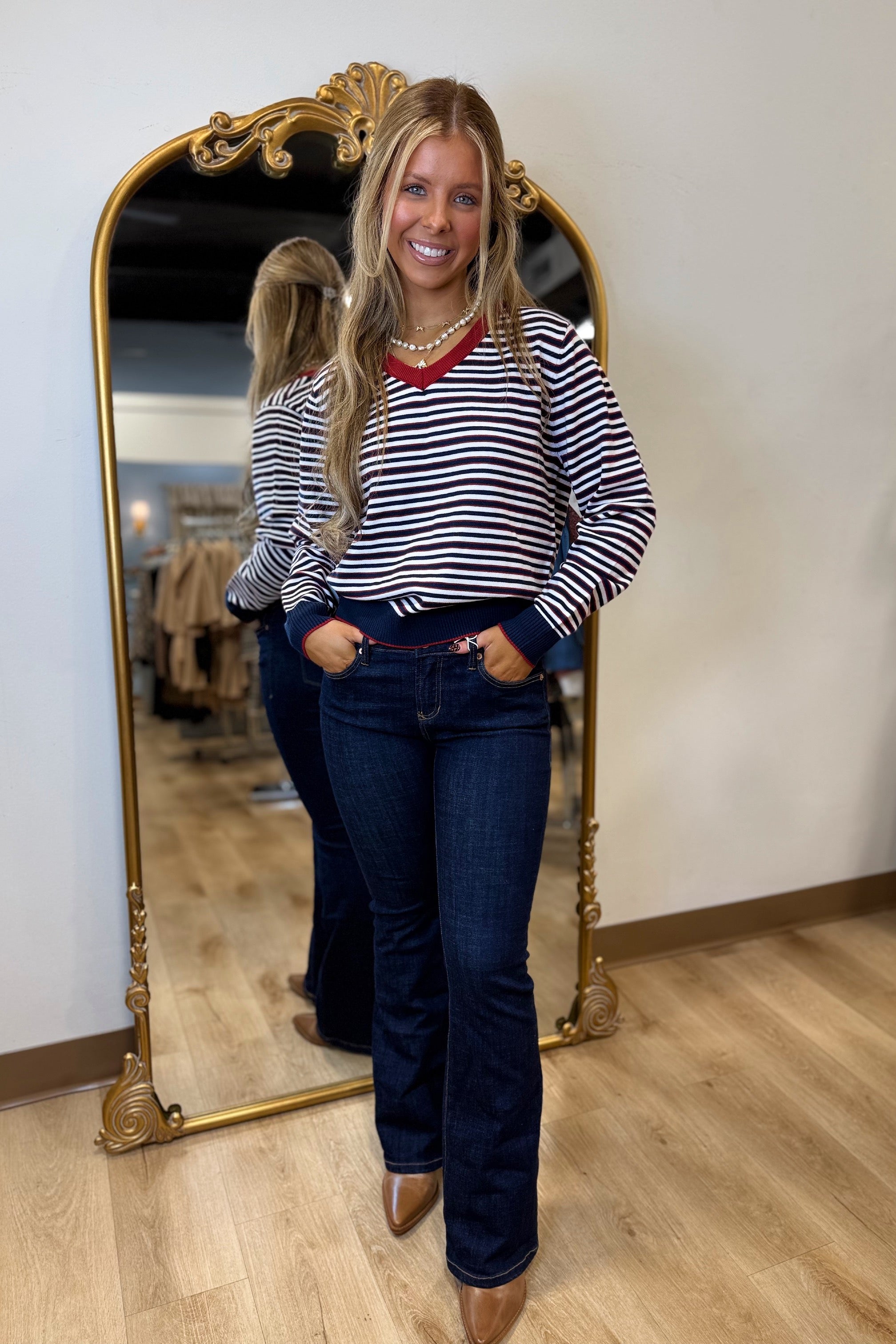 Striped Out V Neck Sweater Navy Red