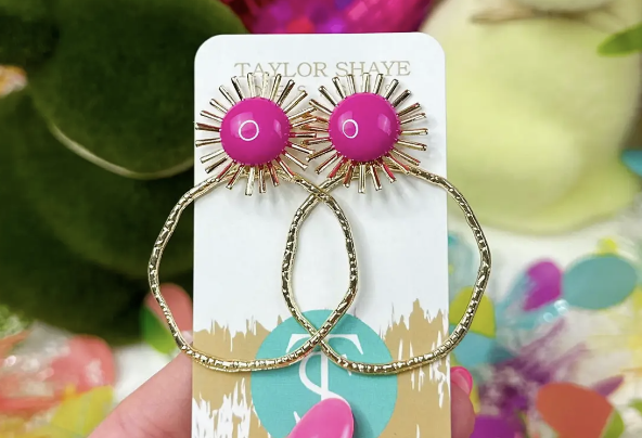 Taylor Shaye Pastel Sunburst Hoops Hot Pink.