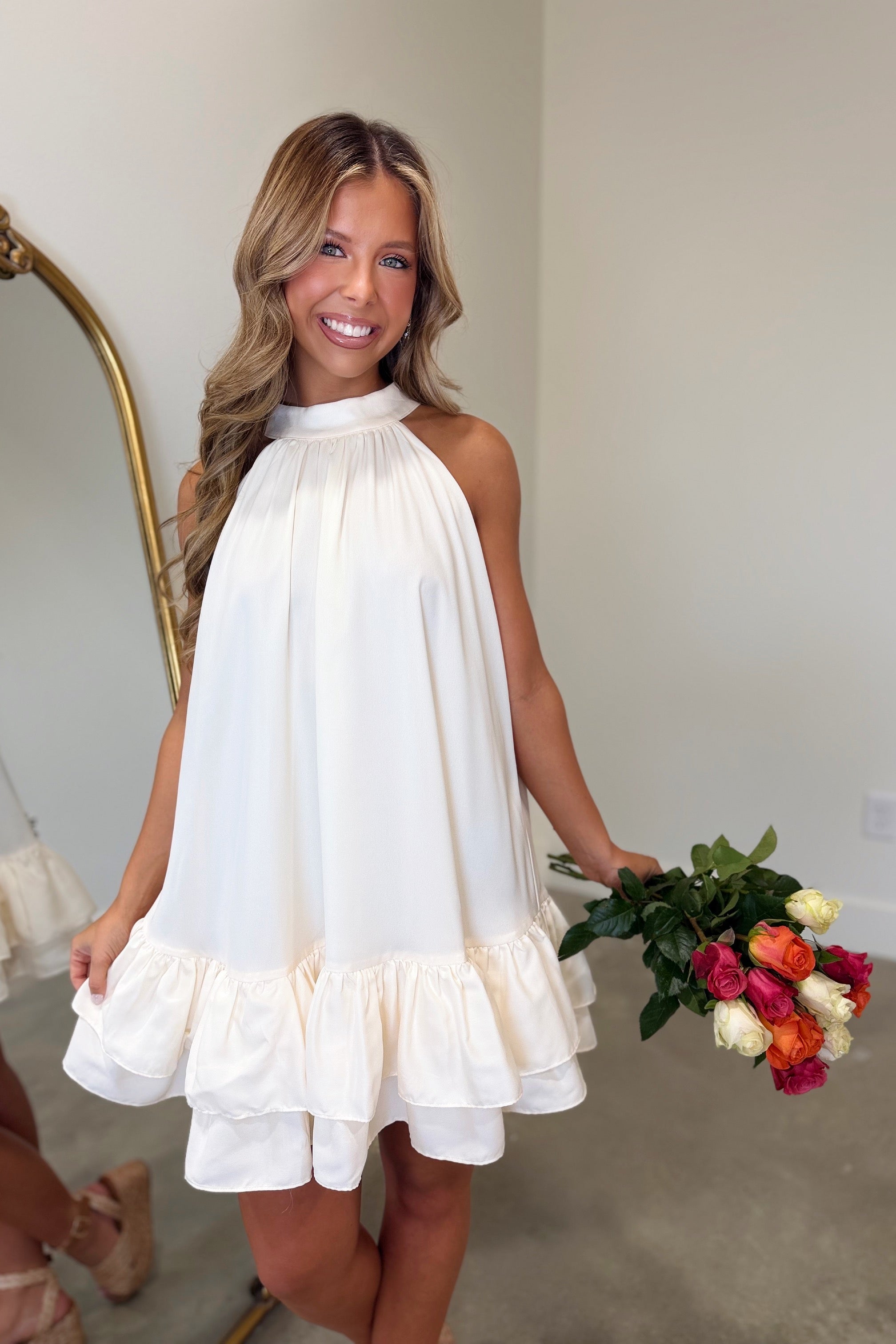 Timeless Romance Ruffled Dress Cream
