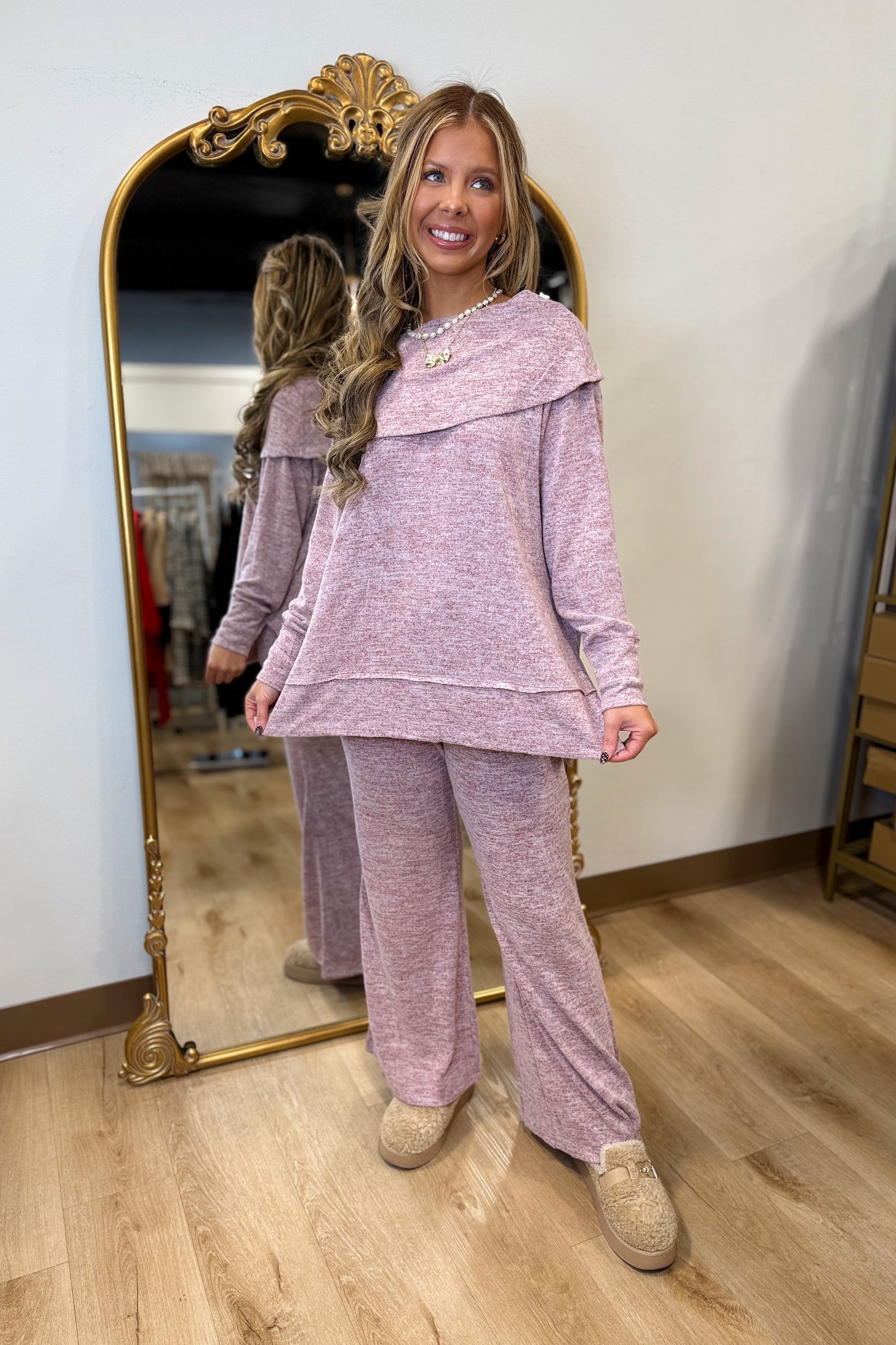 Indulge in the ultimate comfort with this 2 piece brushed cashmere top featuring a stylish chic top design with long sleeves paired with relaxed fit pants, this set exudes effortless sophistication while offering all day comfort. Perfect for traveling or dressing up for casual outings.