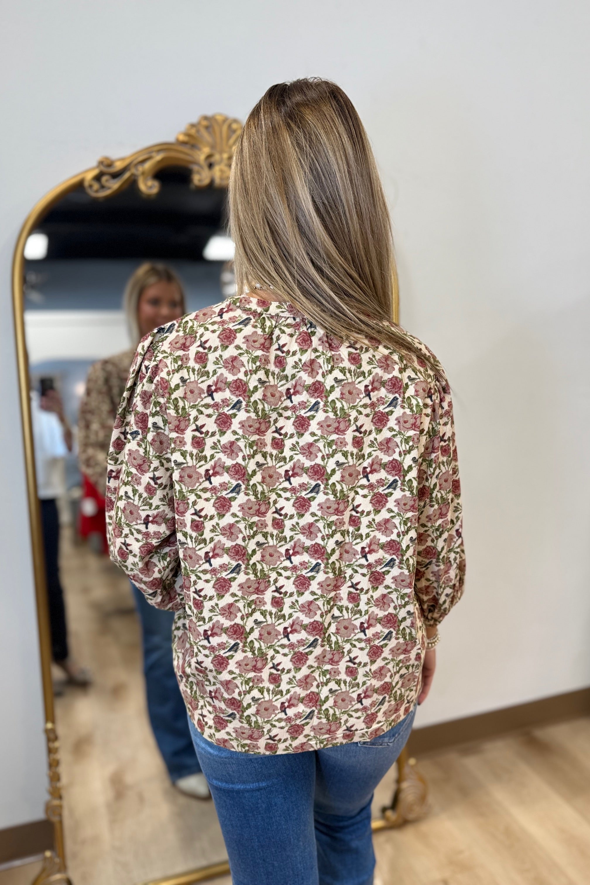 NO LINING FLOWER PRINT CORDUROY TOP WITH RIBBON DETAIL WITH PINTUCKS Rust