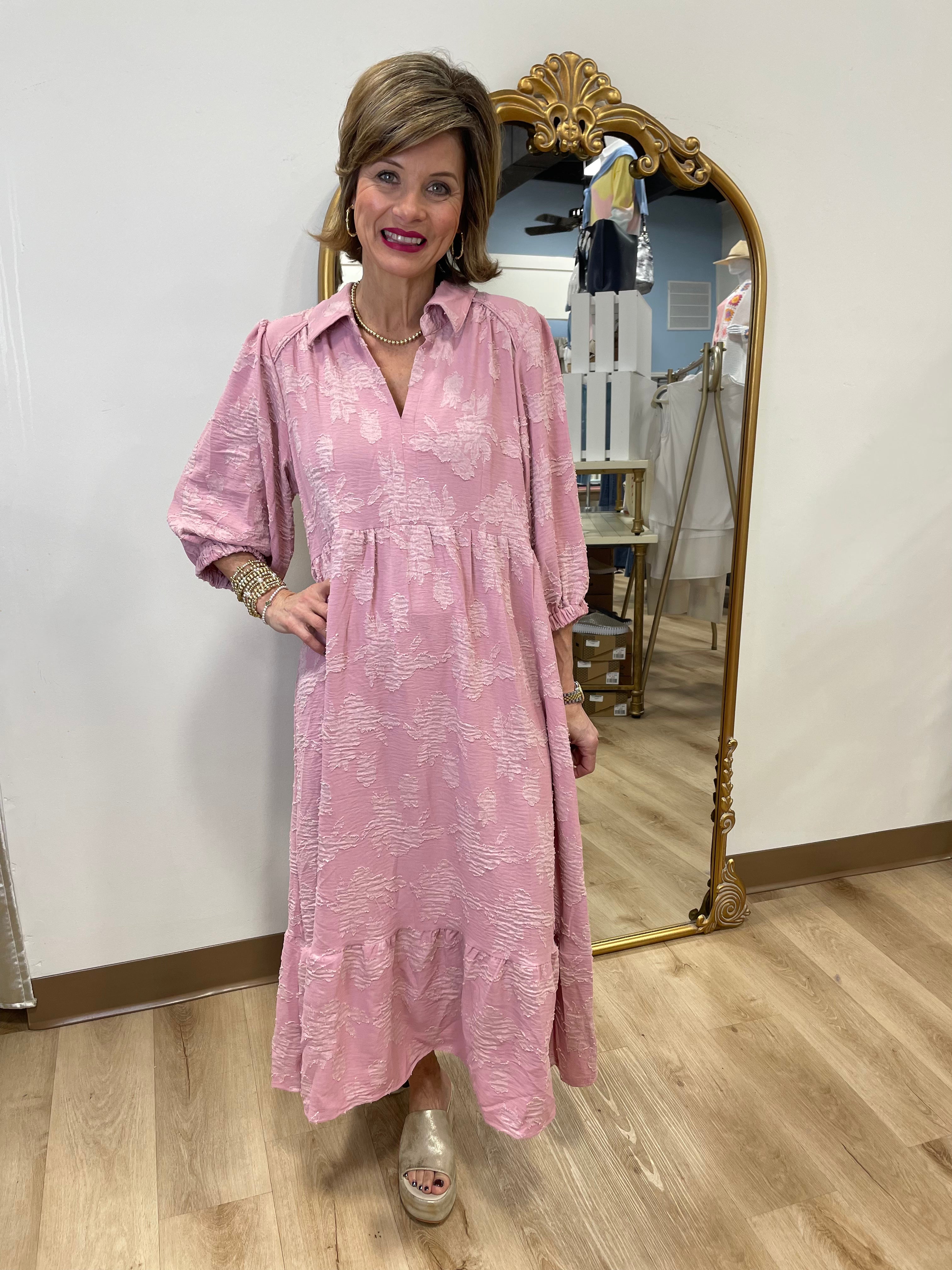 Umgee Floral Burnout Midi Dress Mauve Sizes S - 2X.
