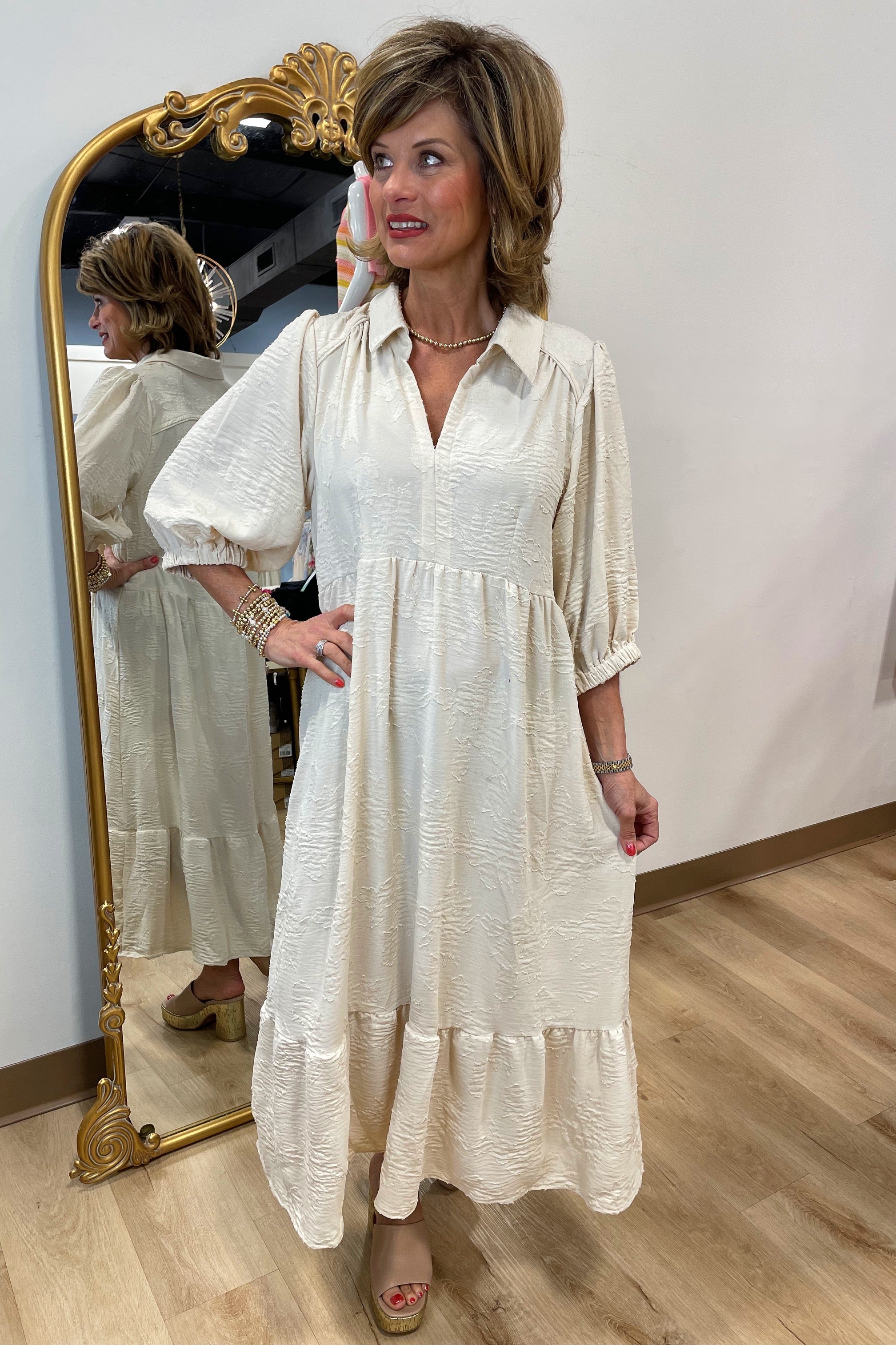 Umgee Floral Burnout Midi Dress Natural