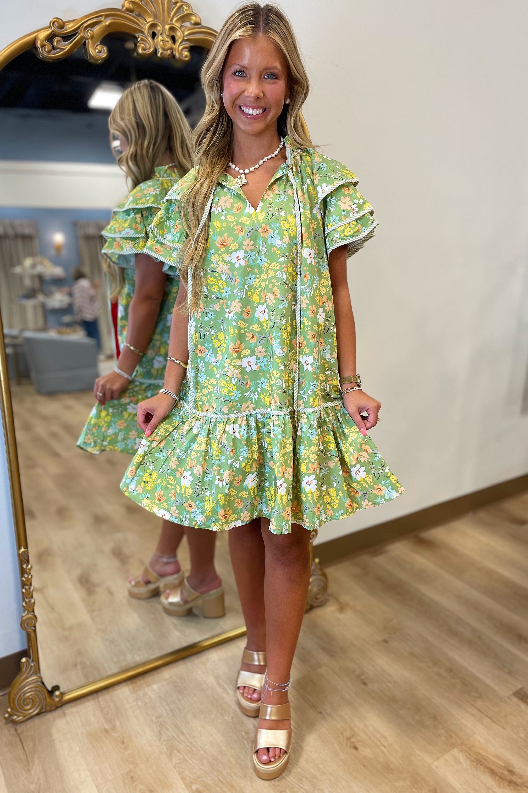 Umgee Frill Collared Dress w Contrast Binding Sage (No Lining)