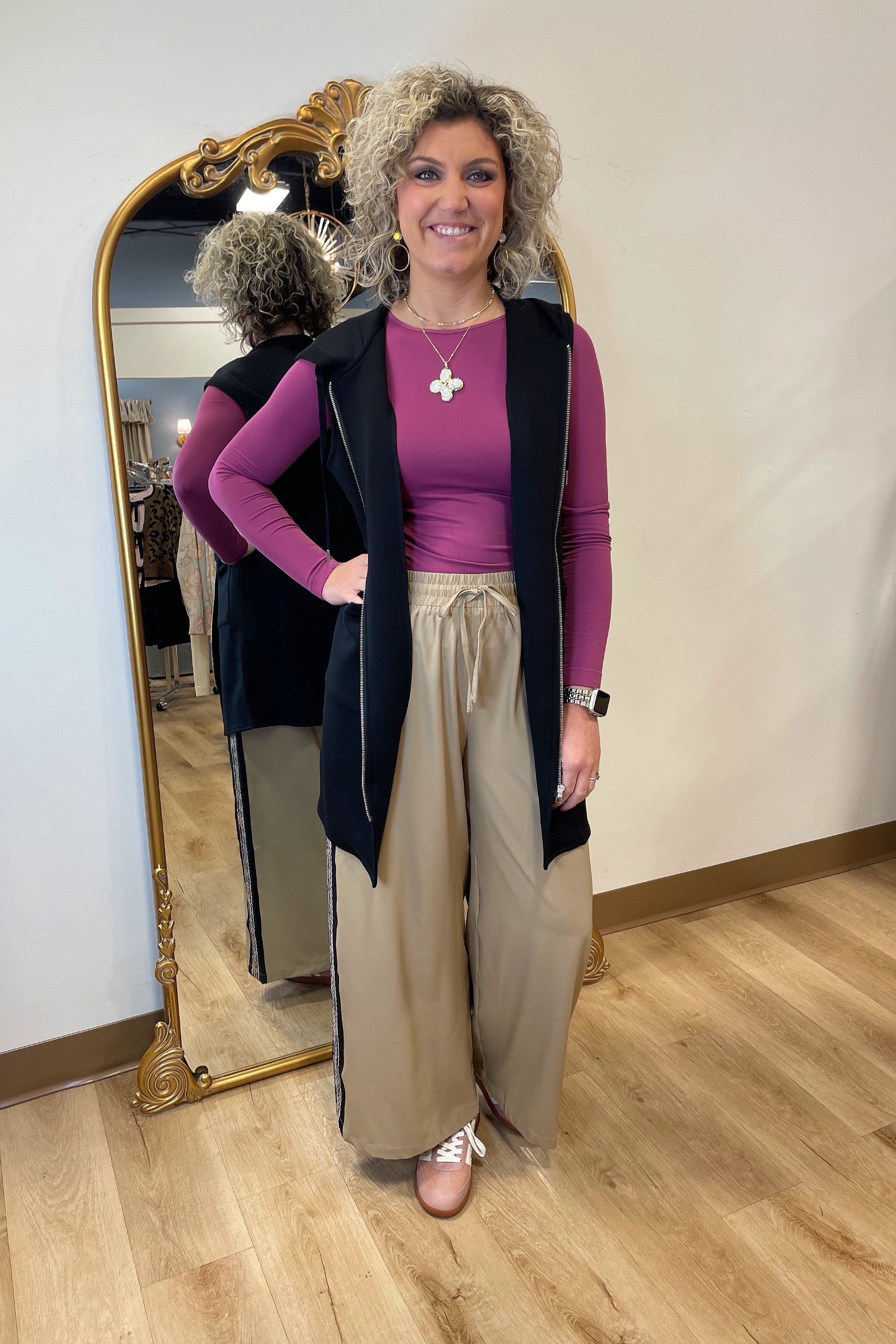 Step out in style with these Black Wide Leg Pants featuring a bold leopard trim. The roomy cut offers comfort and movement, while the playful leopard detail adds a touch of wild fun to your look. Perfect for days when you want to feel relaxed yet ready to roar.