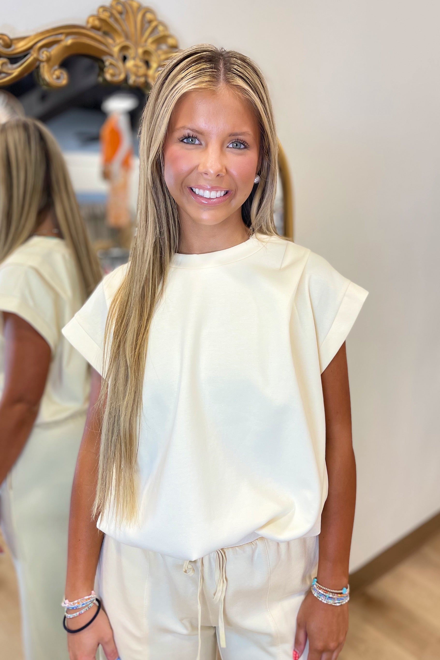 Umgee Luxeknit No Lining Mock Neck Sleeveless Top Ecru