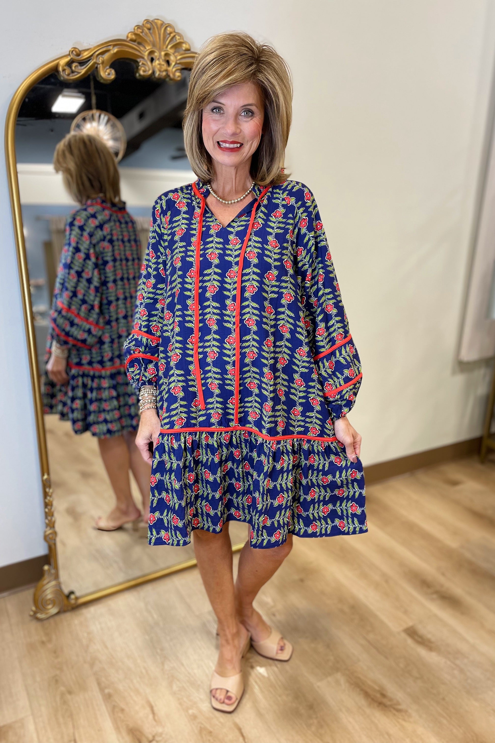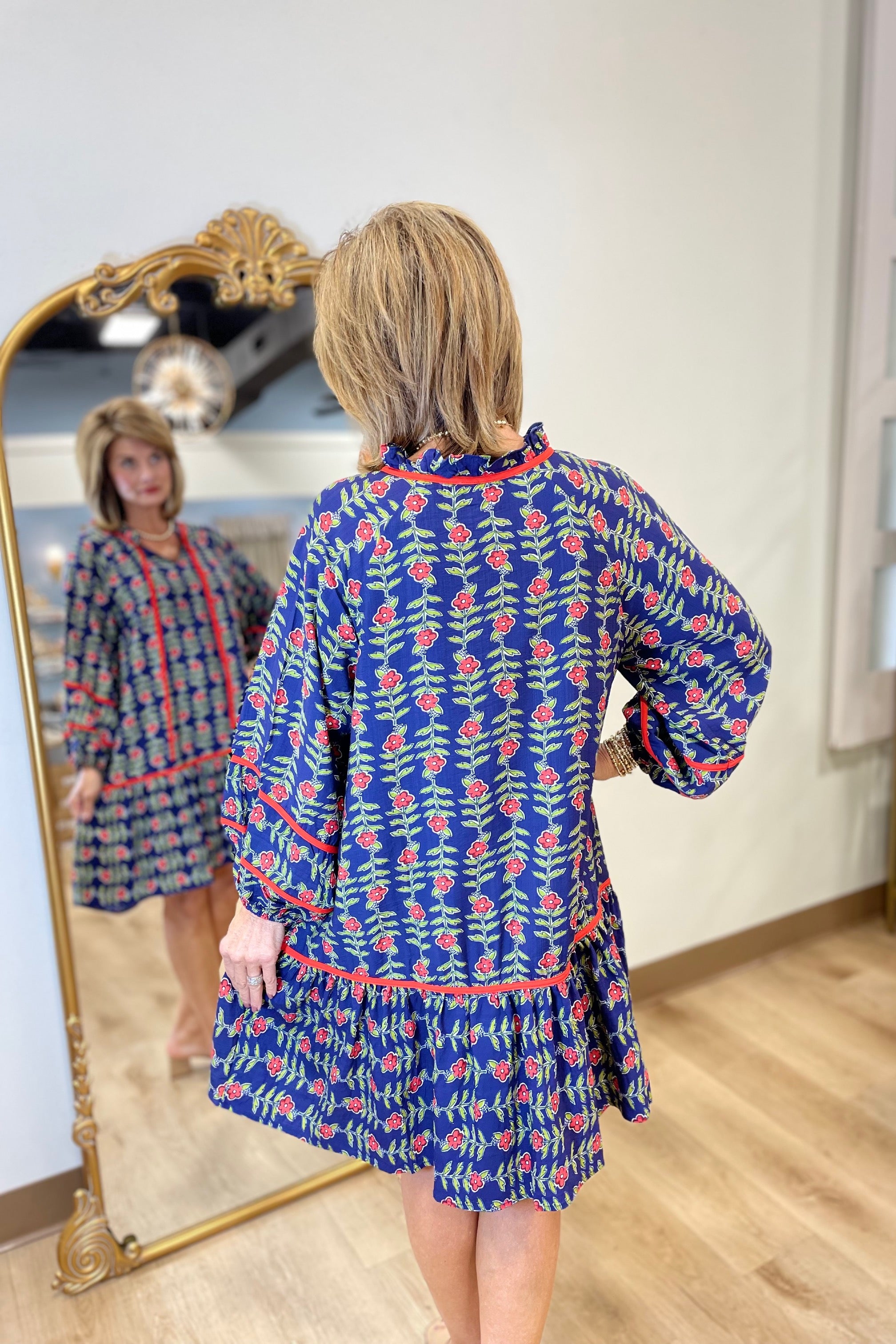 Umgee Midnight Flower Dress w Red Trim
