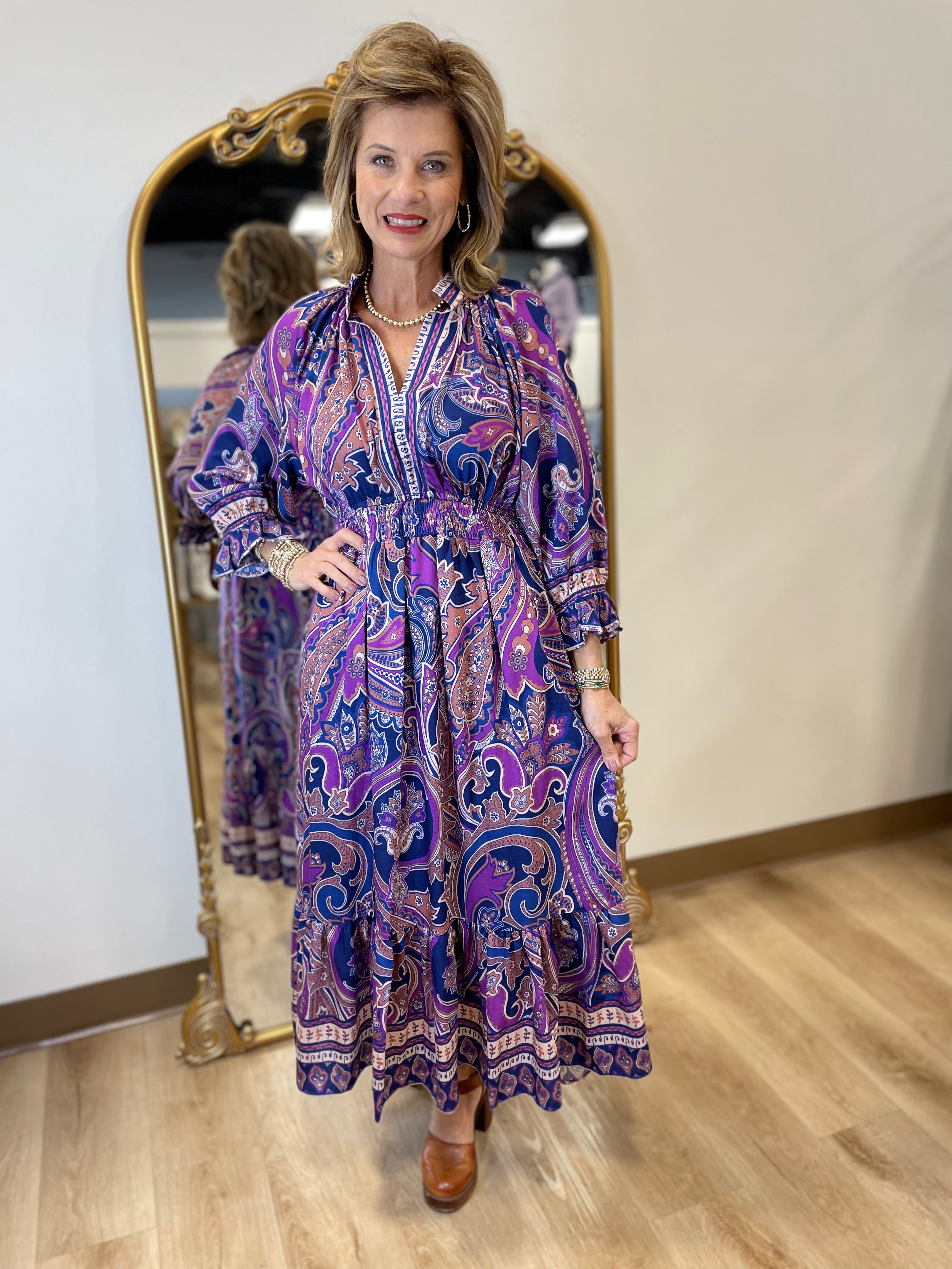 Umgee Paisley Print Dress Purple