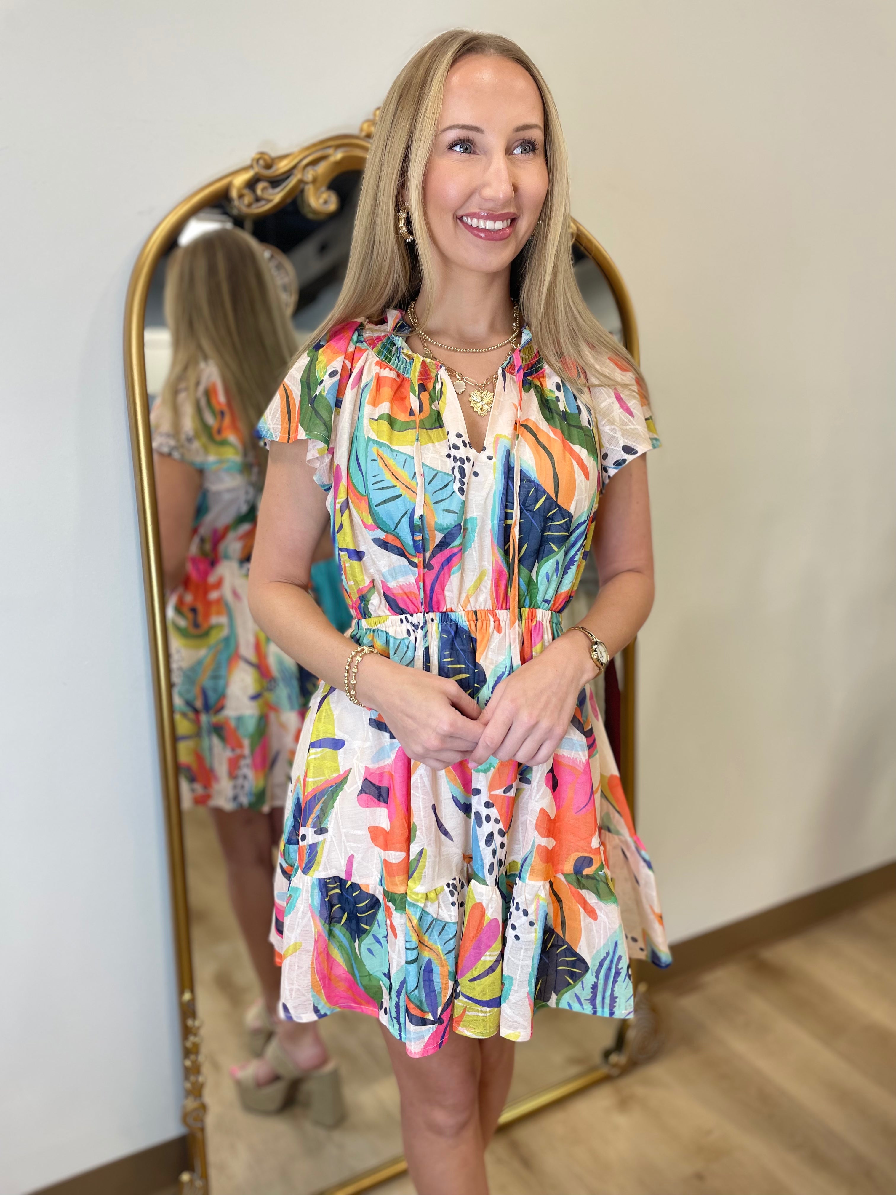 Umgee Trip to the Tropics Elastic Waist Dress Lined