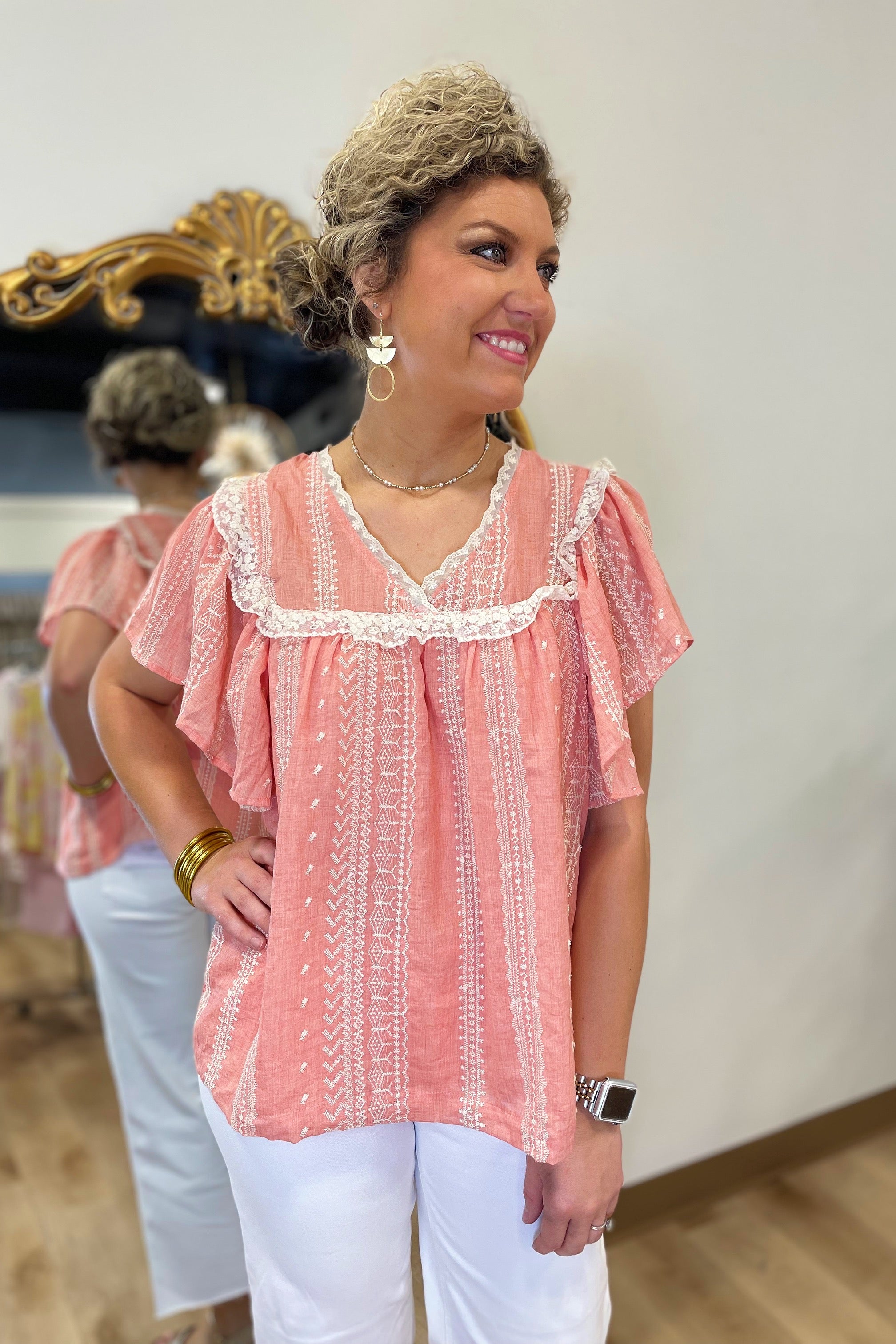 Umgee Vintage Whisper Embroidered Top Peach