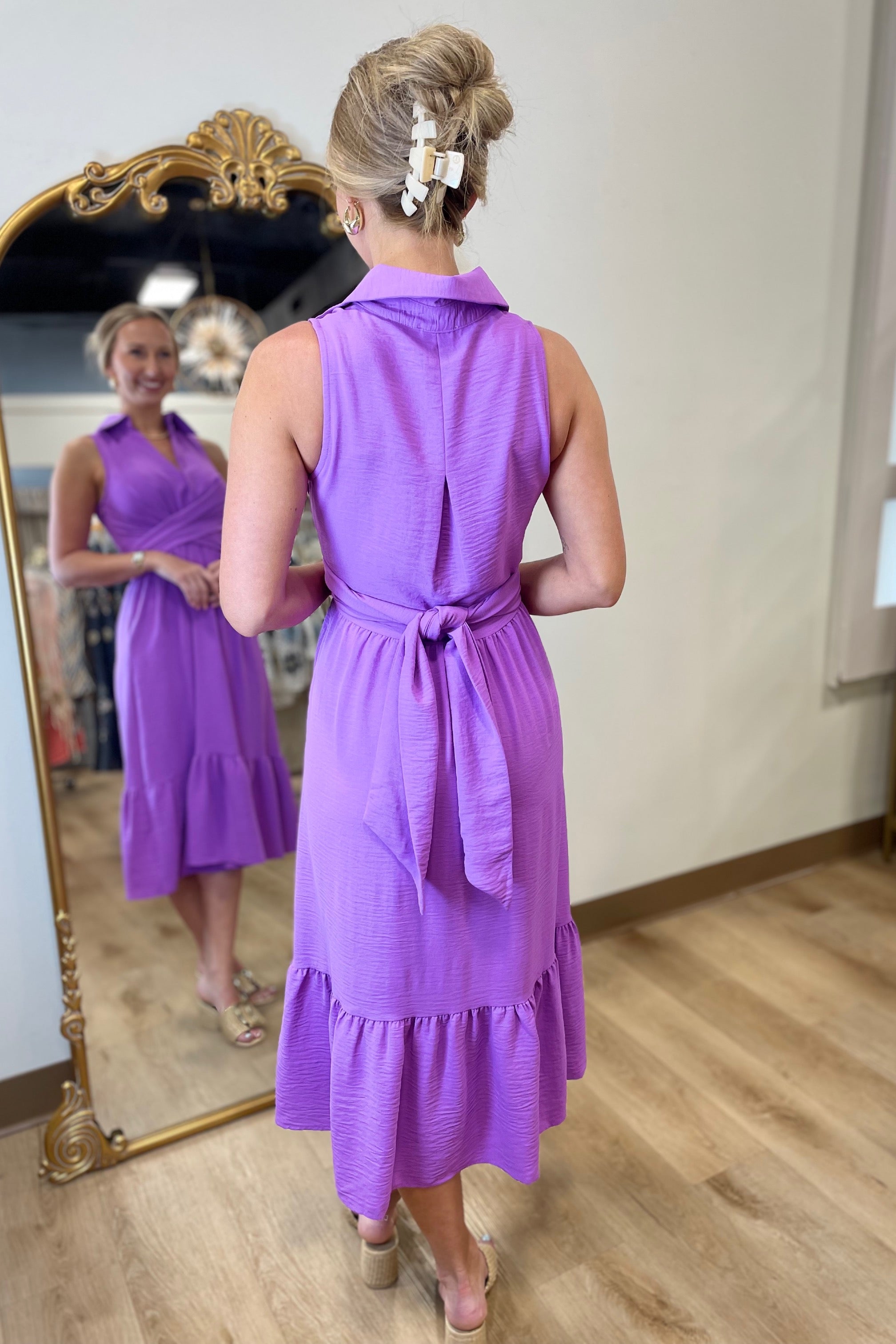 Umgee Collared Sleeveless Wrap Midi Dress Orchid