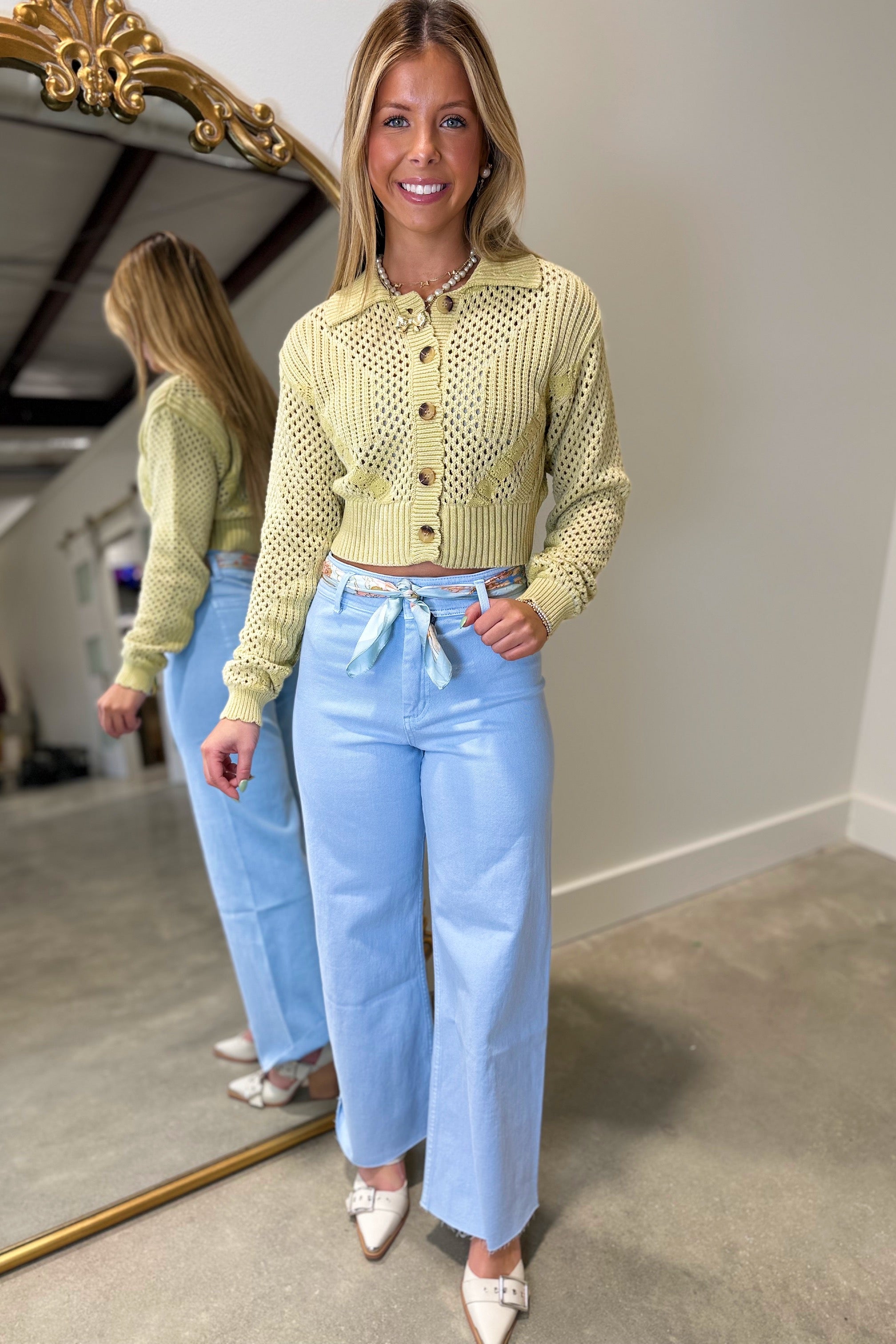 Vanilla Sunset Long Sleeve Pointelle Cardigan Sweater