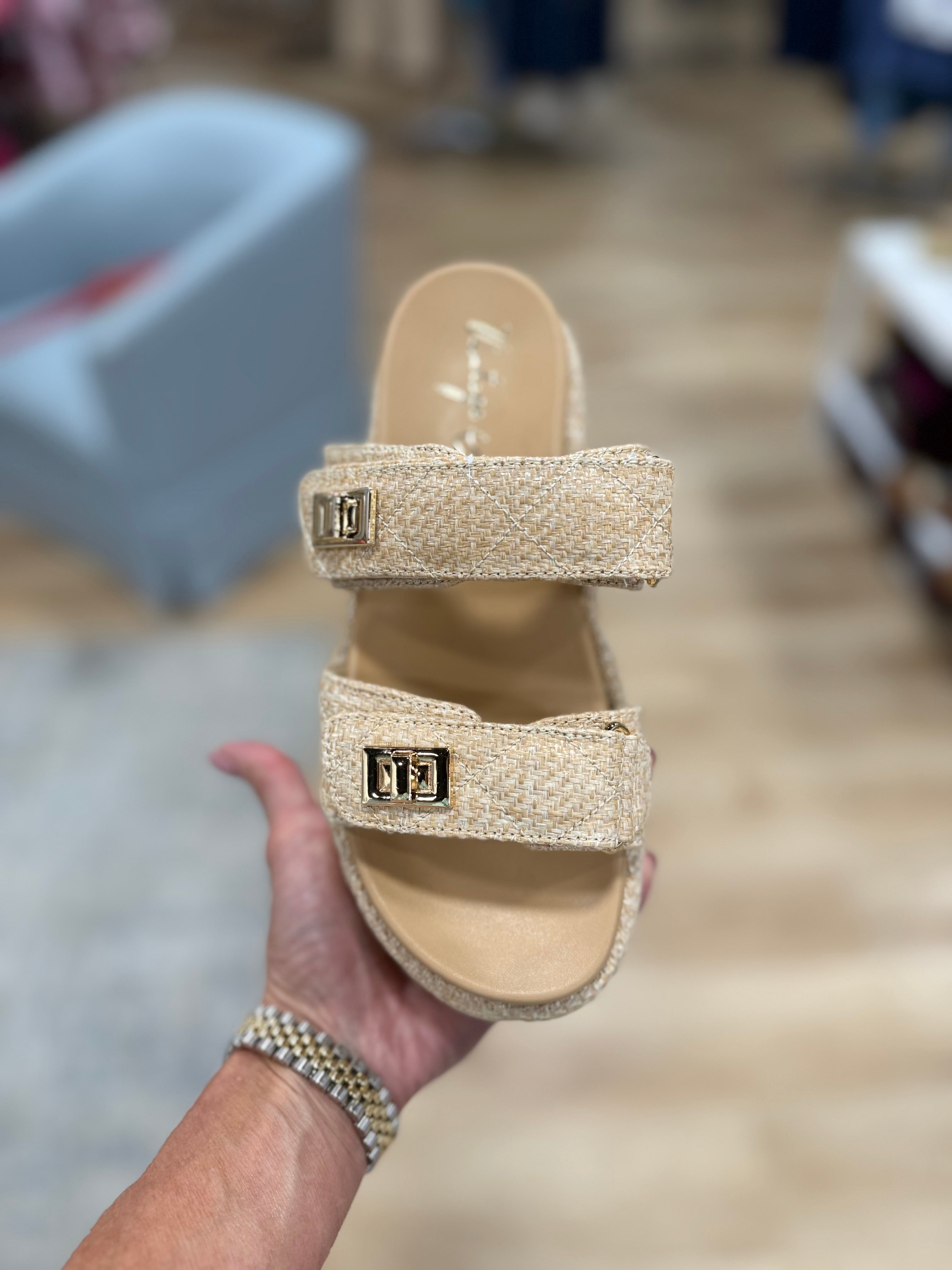 Vintage Havana Onya Quilted Wedged Sandal Nude.