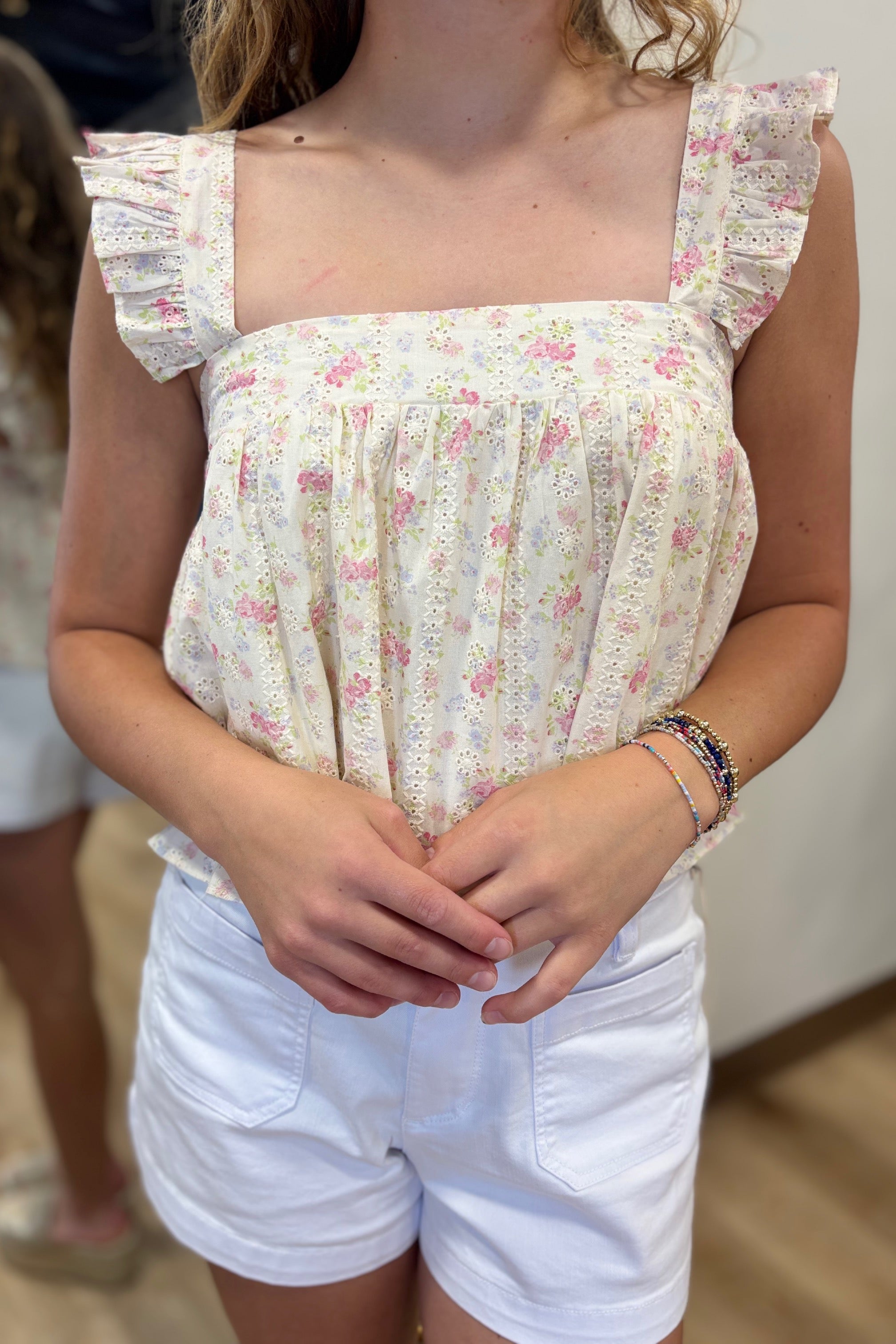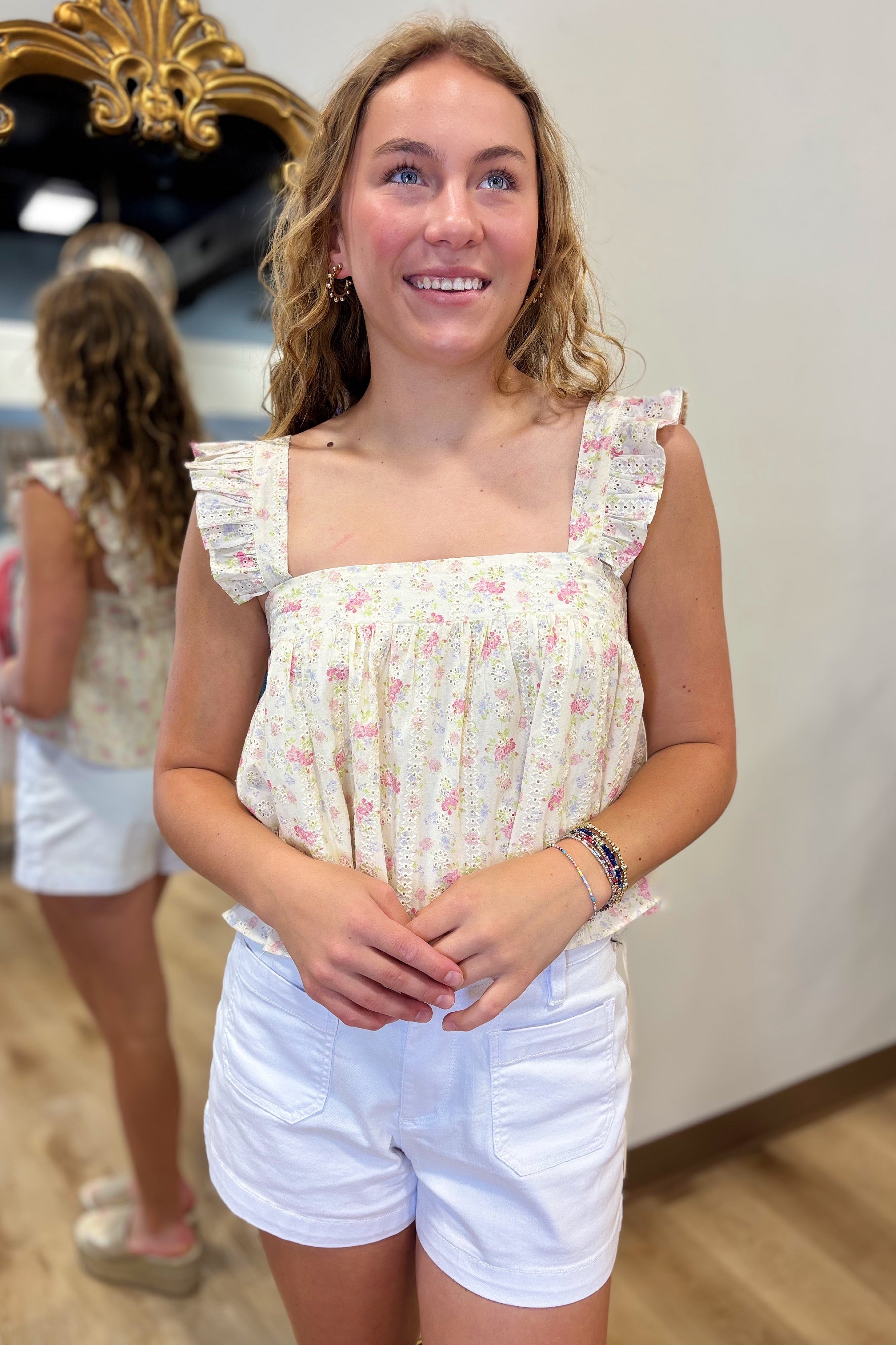 Whispers of Pink Ruffle Sleeve Babydoll Crop Top Blue.