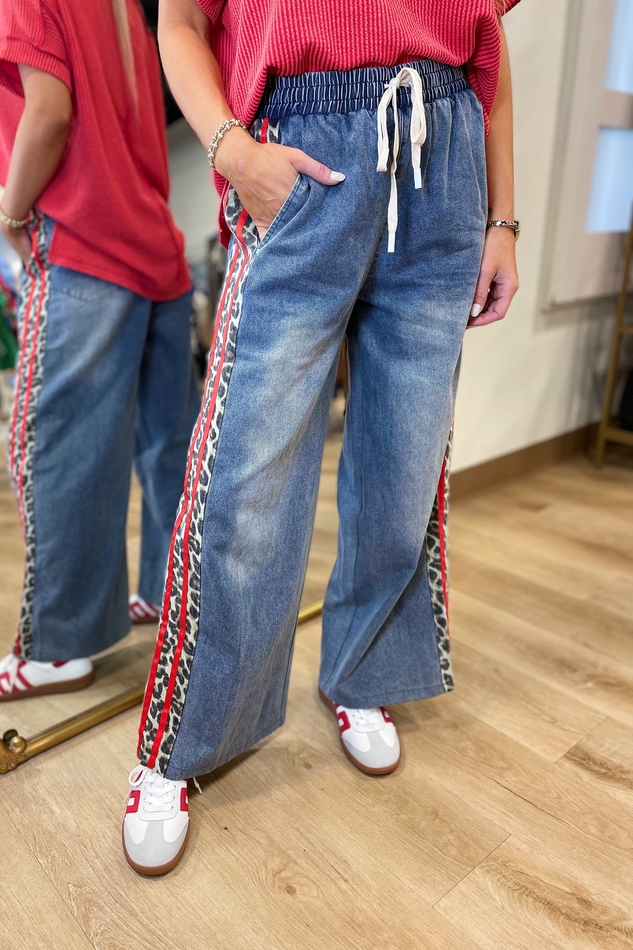 Wild Side Leopard Accent Wide Leg Pants